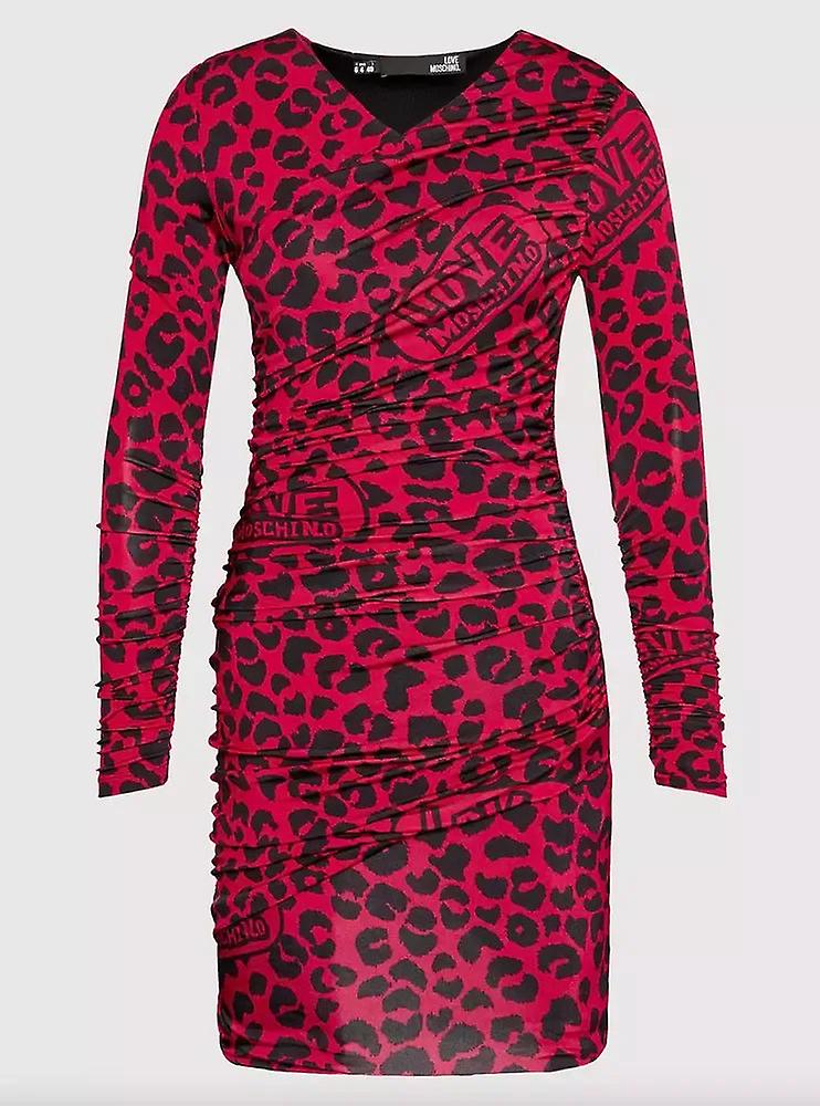 Love Moschino Red & Black Leopard Print Viscose Short Dress