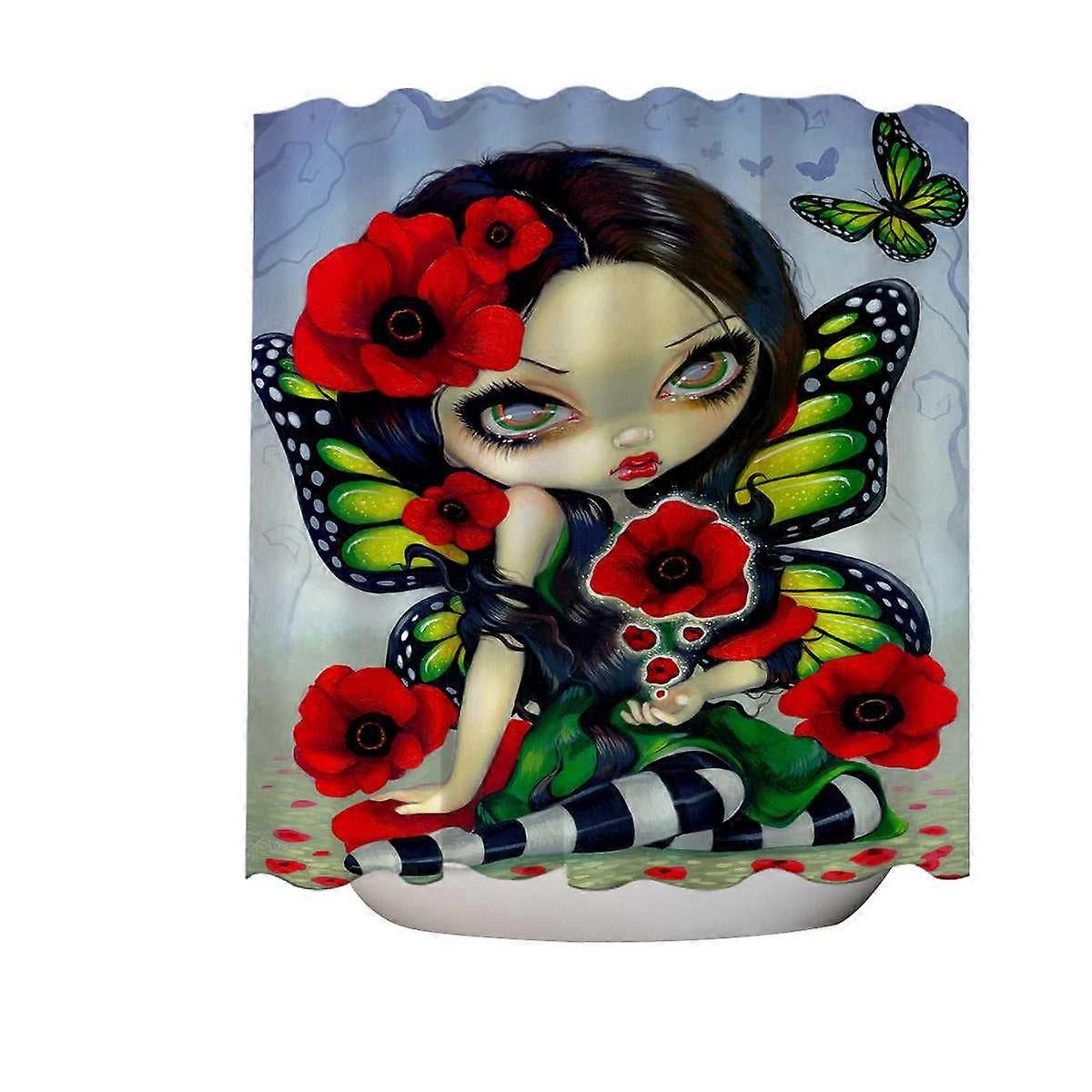 Lovely Big Eyed Butterfly Fairy with Red Poppies Shower Curtain