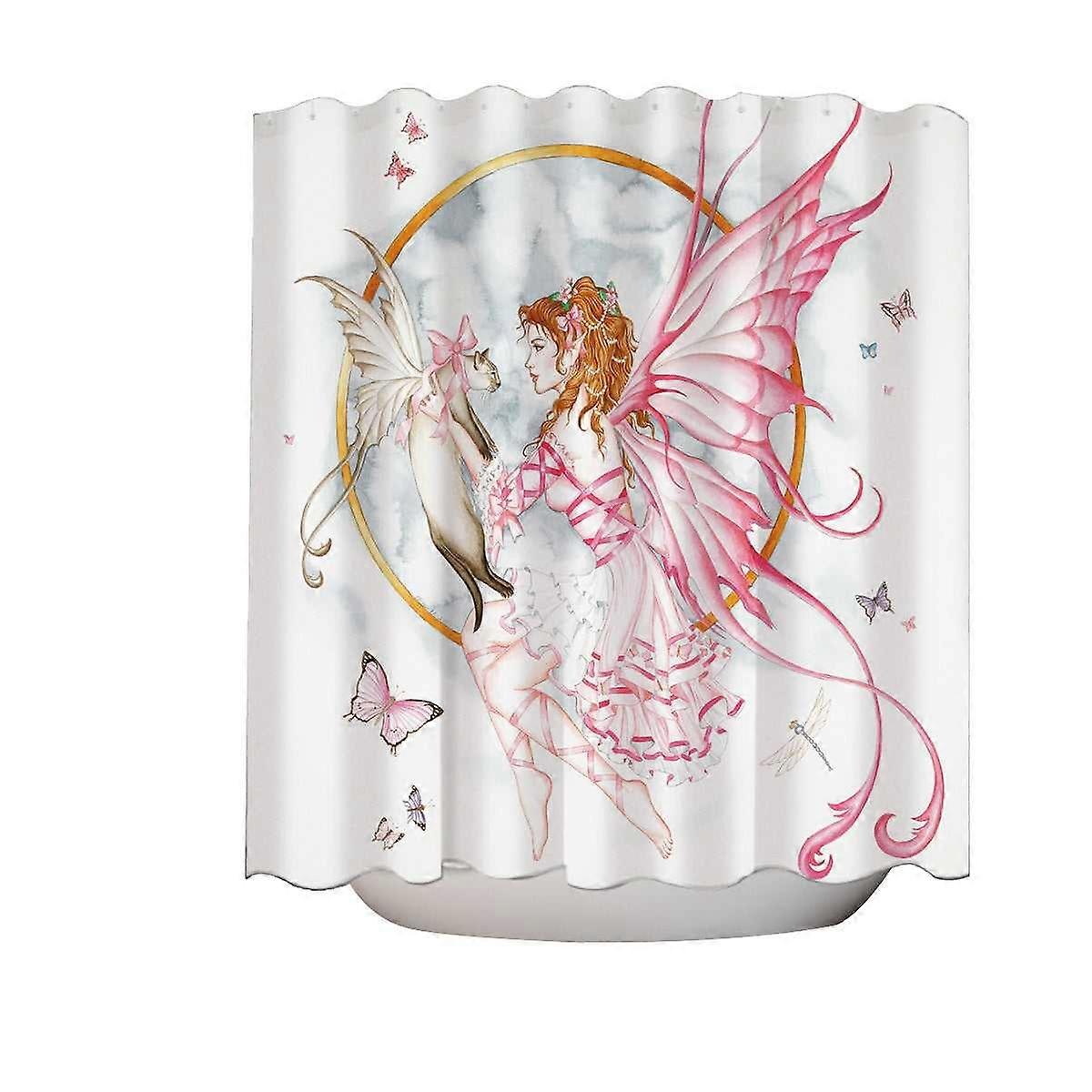Lovely Fantasy Drawing Butterflies Cat and Fairy Shower Curtain