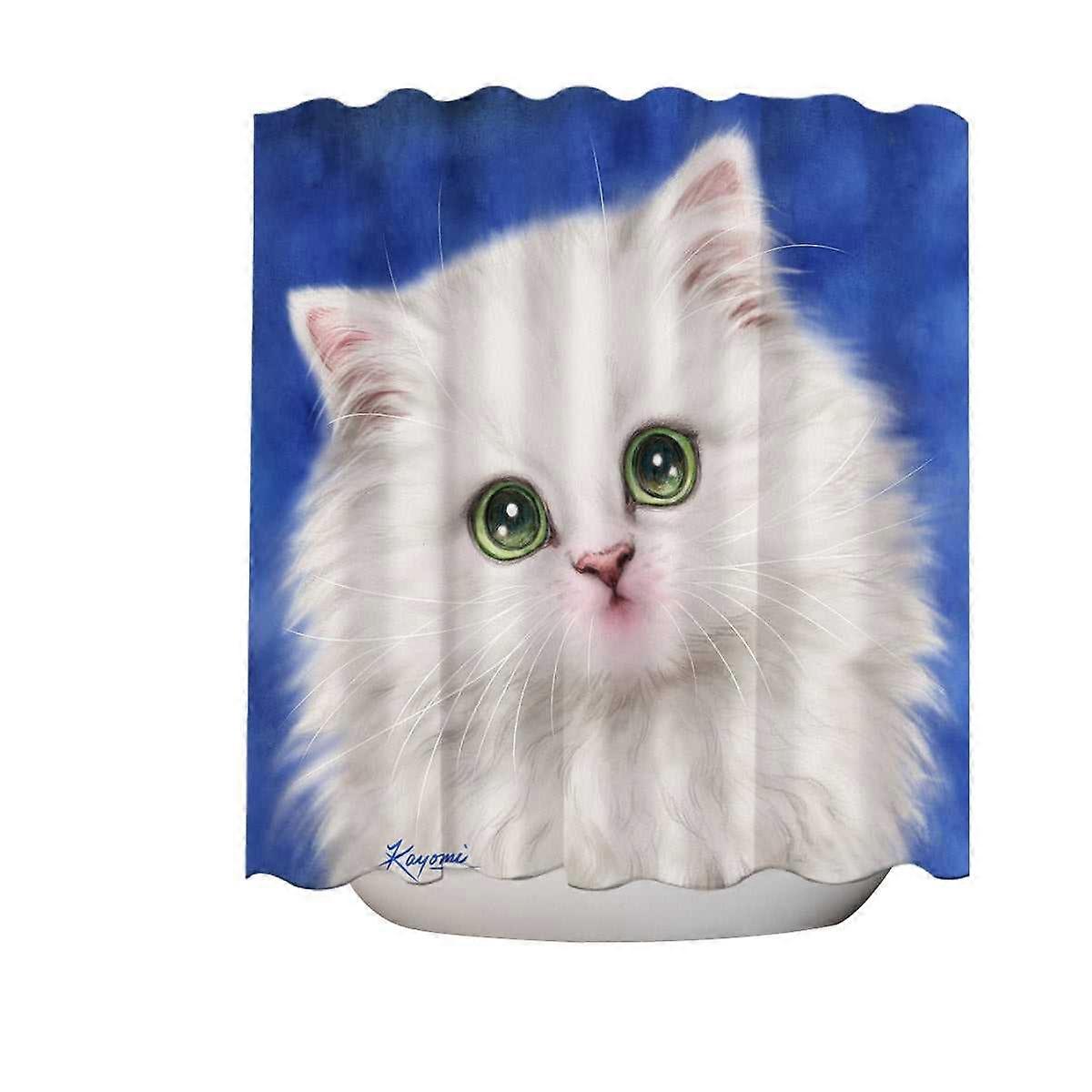 Lovely Innocent Face White Fluffy Kitty Cat Shower Curtain