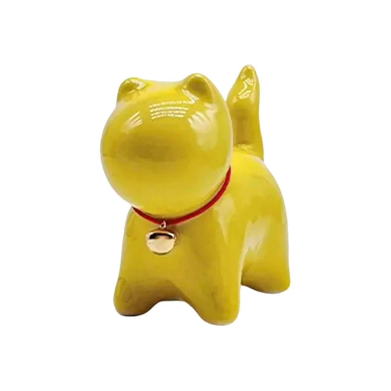 Lovely Small Animal Figurine Ceramic Kitten Decoration Ornament for Table Setting Or Home Desk Shelf Space Ornament Yellow