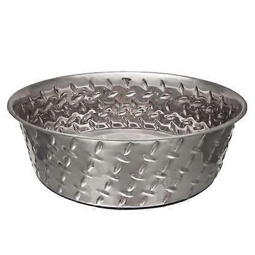 Loving Pets Diamond Plate Bowls with Non Skid Bottom Dog Dish Bowl, Silver, 1 Each/2 qt