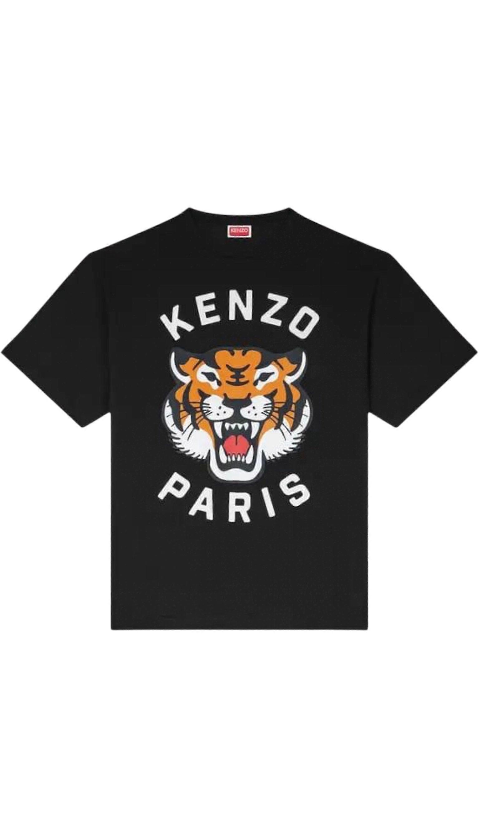 Kenzo – T-shirt Oversize Noir Lucky Tiger Brodé Le T-shirt Lucky Tiger Kenzo revisite l’iconique motif du tigre dans une version oversize audacieuse et moderne.Confectionné en jersey de coton doux, il allie confort et style graphique avec son impression “Lucky Tiger” brodée sur la poitrine. Sa coupe ample et sa matière fluide offrent une silhouette décontractée tout en conservant l’élégance distinctive de la maison Kenzo Paris.Une pièce emblématique, à la fois artistique et contemporaine, idéale pour un look streetwear chic. Détails techniques * Marque : Kenzo * Modèle : Lucky Tiger Oversize T-shirt * Genre : Homme * Couleur : noir * Composition : 100 % coton * Matière : jersey doux * Motif : impression “Lucky Tiger” brodée à l’avant * Coupe : oversize (ample et confortable) * Col : rond * Manches : courtes