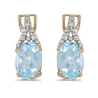LXR 10k Yellow Gold Oval Aquamarine and Diamond Earrings 1.12ct