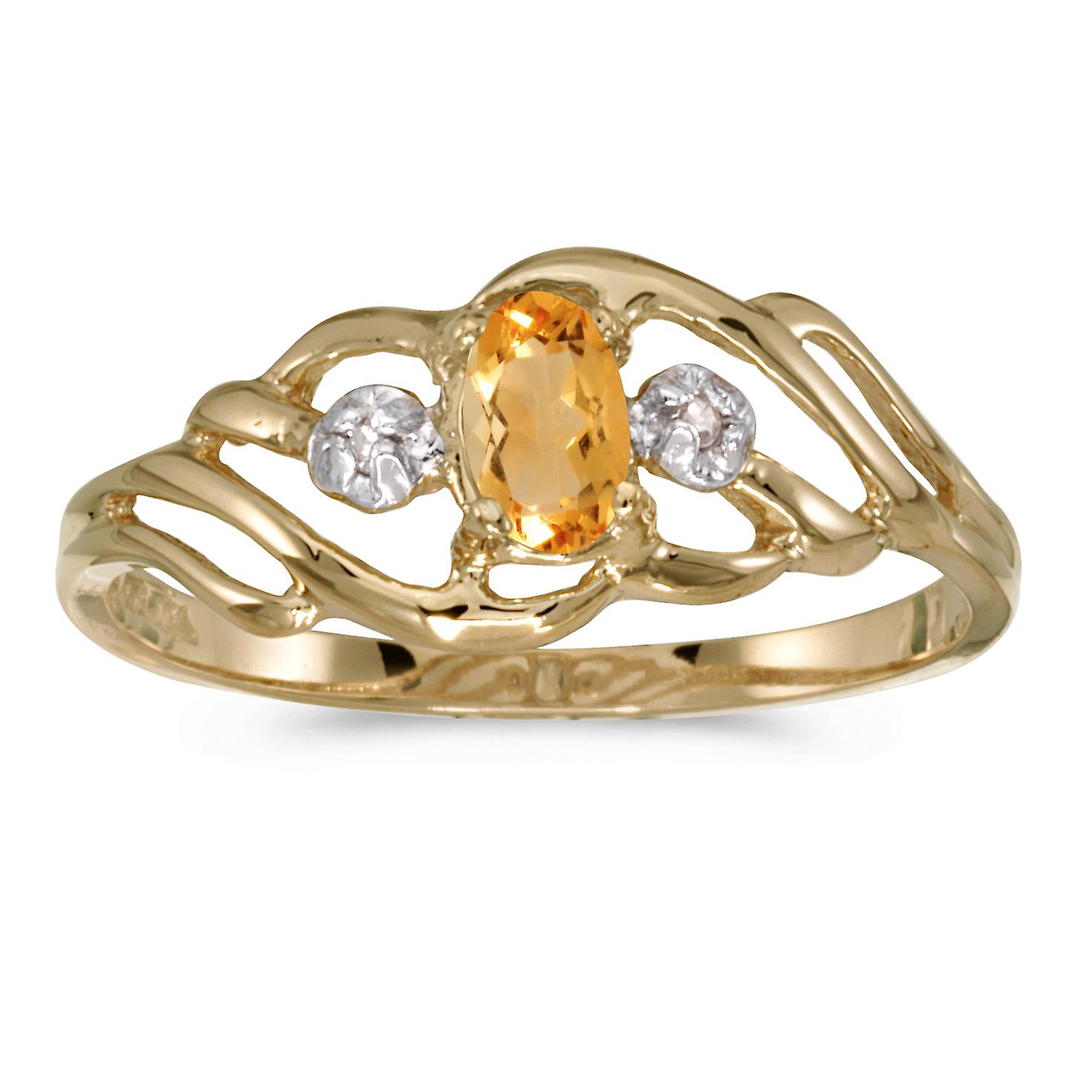 LXR 10k Gelbgold Oval Citrin und Diamant Ring 0.15 ct