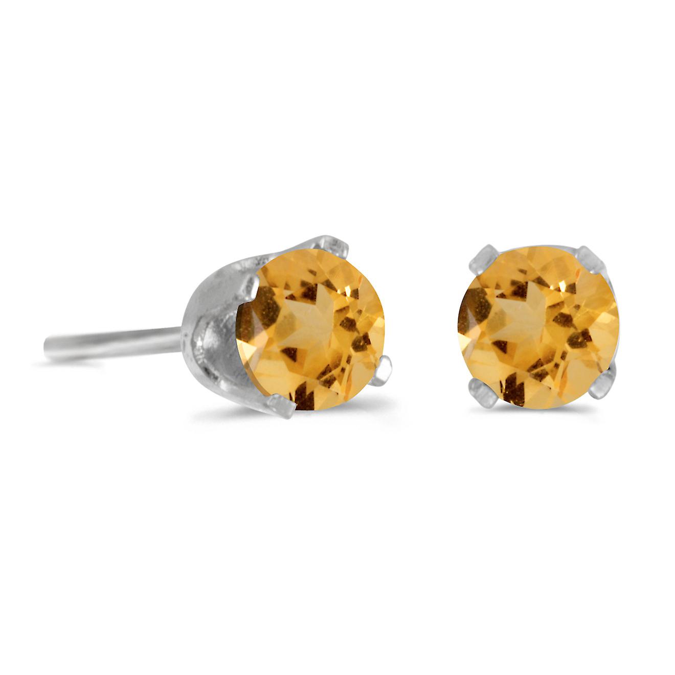 LXR 14k Weißgold 4 mm Rund Citrin Stecker Ohrringe 0.36 ct