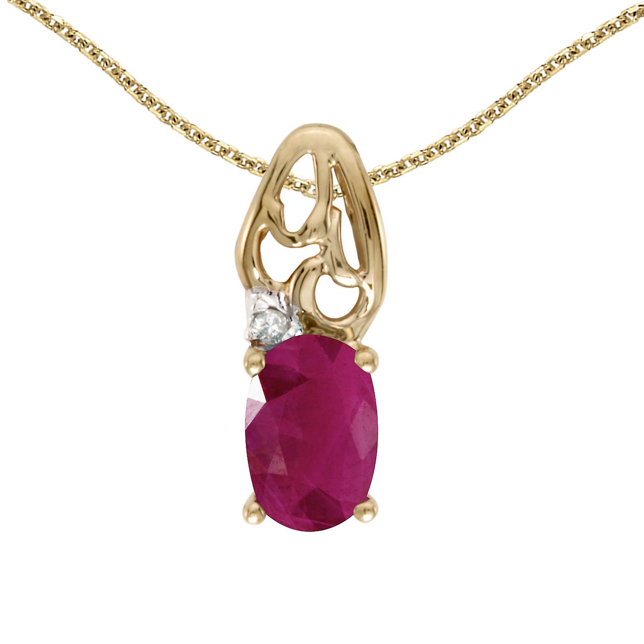 LXR 14k Gelbgold Oval Rubin und Diamant Anhänger 0.36 ct