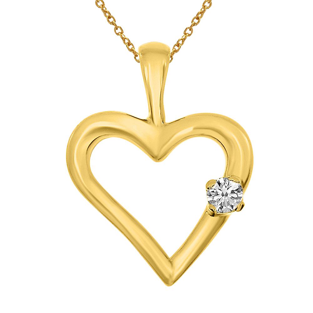 14k yellow gold open heart pendant diamond pendant (.05 ct).