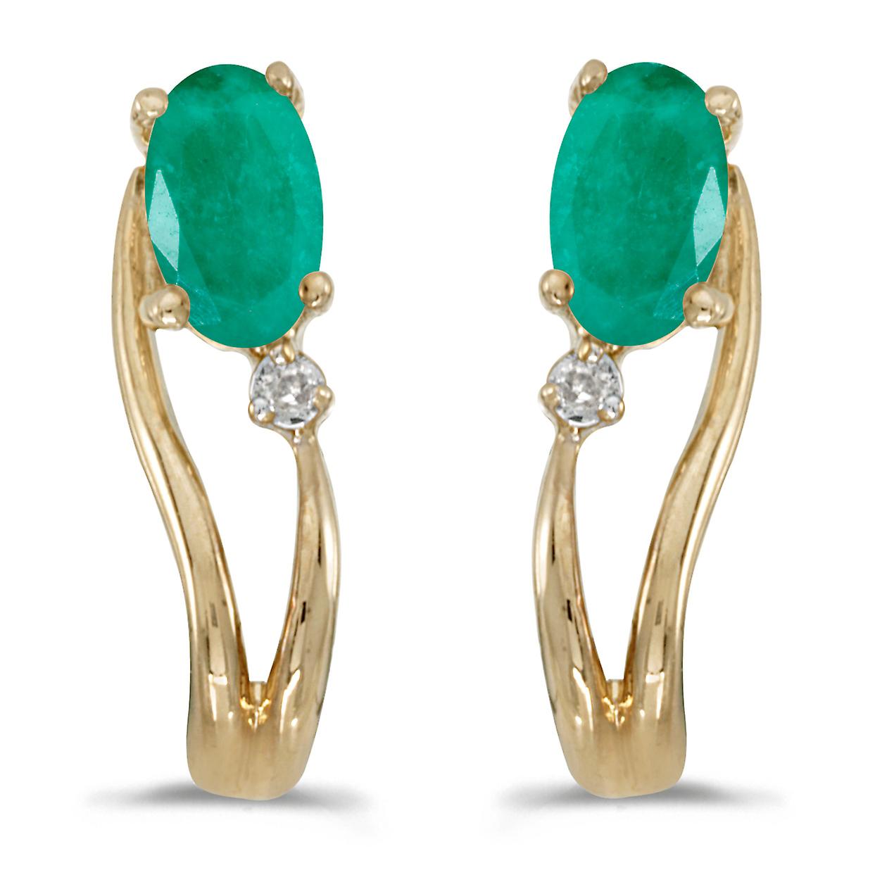 LXR 14k Gelbgold Oval Smaragd und Diamant Wave Ohrringe 0.32