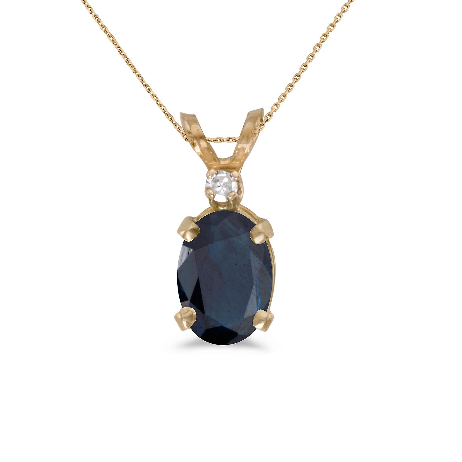LXR 14k Gelbgold Oval Saphir und Diamant Anhänger 0.8 ct