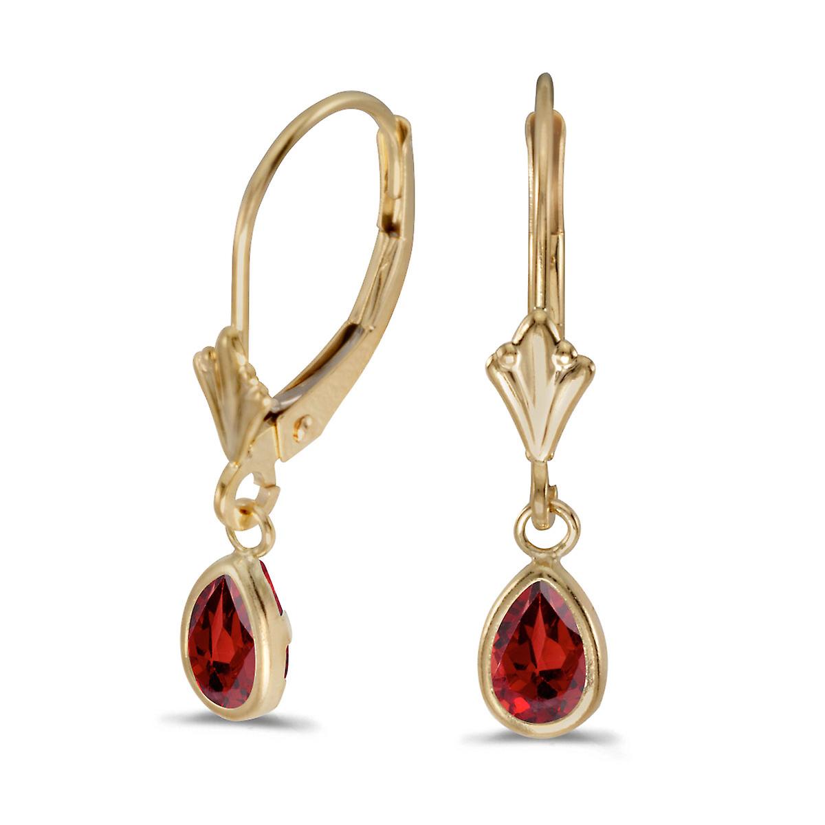 LXR 14k Gelbgold Pear Granat Zargenfassung Klappbügel Ohrrin