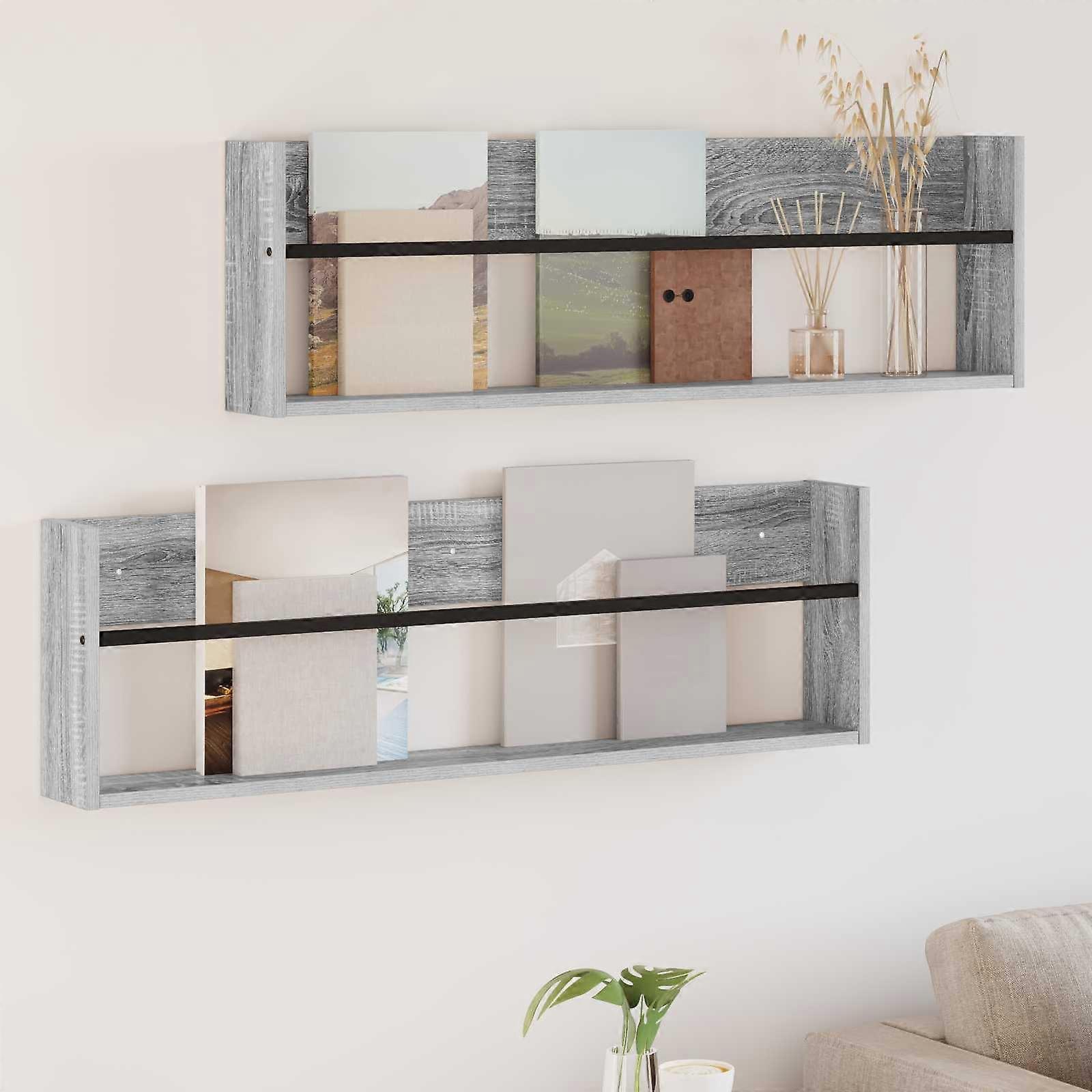 Magazinregal 2 pcs Graues Sonoma 100 x 12 x 30 cm Holzwerkstoff