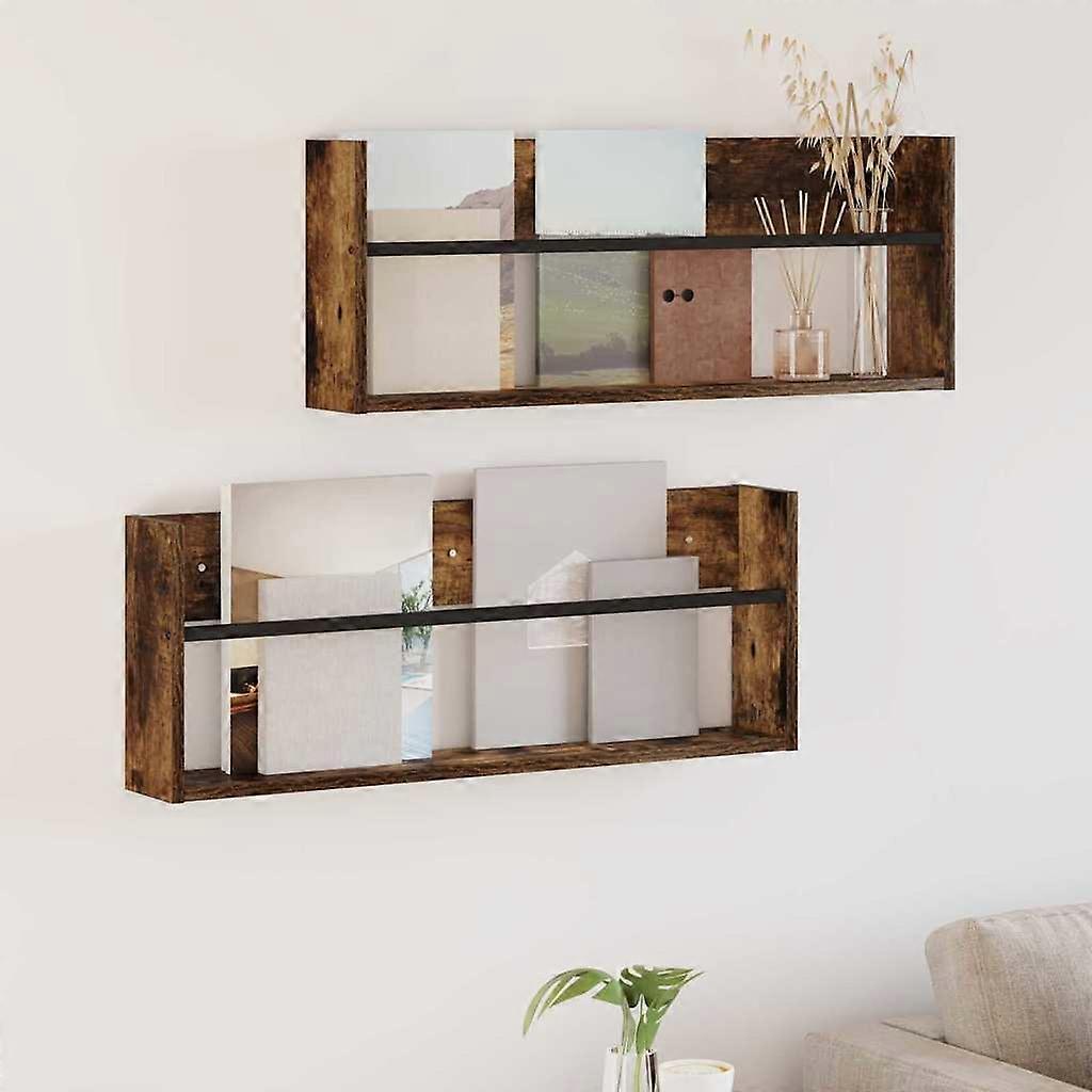 Magazinregal mit Regal 2 pcs Geräucherte Eiche 80 x 12 x 30 cm