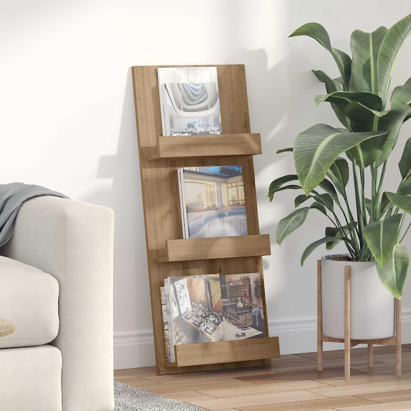 Farbe: Artisan-EicheMaterial: HolzwerkstoffGesamtabmessungen: 43 x 11 x 102 cm (L x B x H)Gewicht: 6,8 kgLanglebigVielseitige AnwendungEinfache Reinigung der Oberflächemit 3 RegalenRahmenmaterial: HolzwerkstoffMax. Gewicht: 40 kgNur für den InnenbereichLieferumfang:1 x MagazinregalMontage erforderlich: Ja