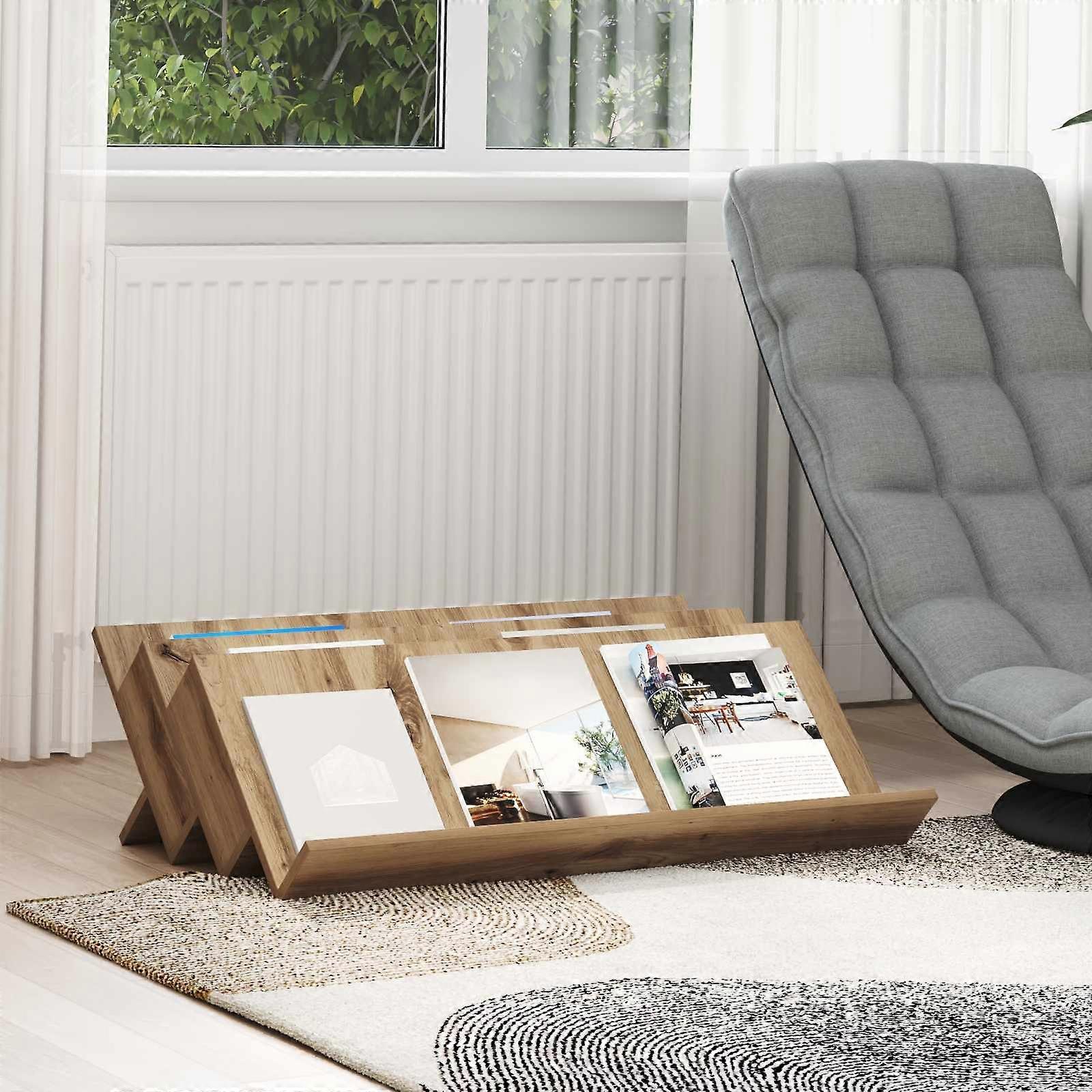 Farbe: Artisan-EicheMaterial: HolzwerkstoffGesamtabmessungen: 90 x 53 x 28,5 cm (L x B x H)Gewicht: 13,01 kgLanglebigVielseitige Anwendungmit 3 Brett-RegaleRahmenmaterial: HolzwerkstoffNur für den InnenbereichLieferumfang:1 x MagazinregalMontage erforderlich: Ja