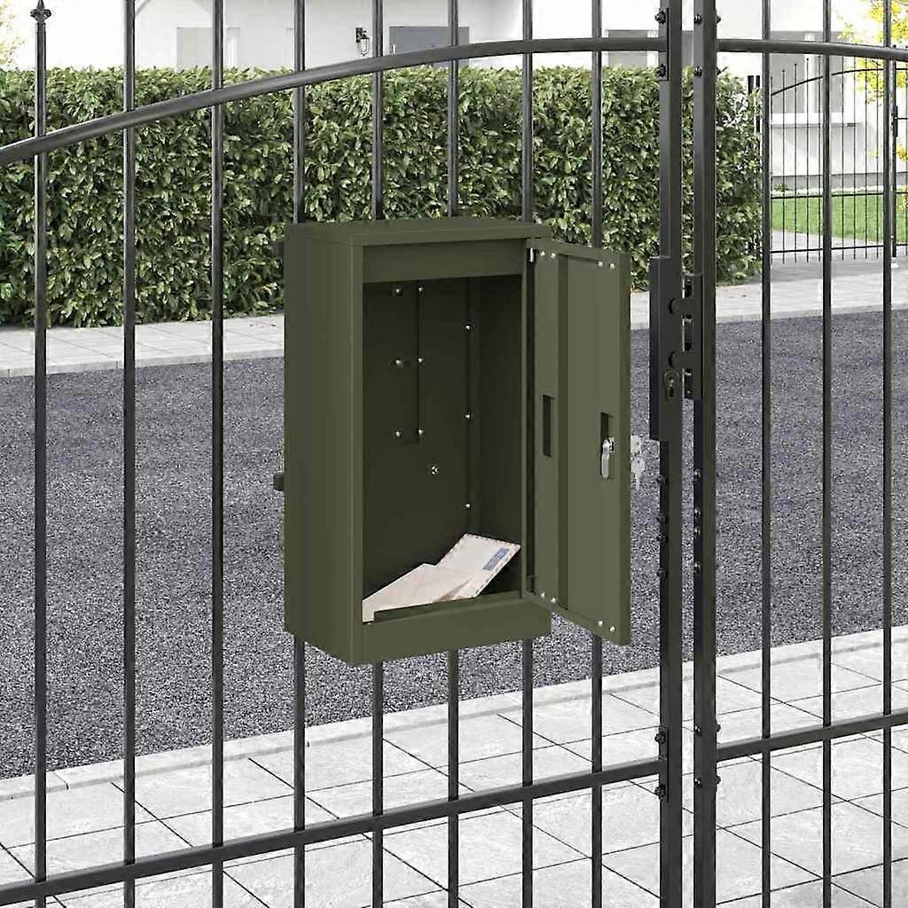 Briefkasten mit Speicher mit Tür Olivgrün 30 x 20 x 55 cm Stahl