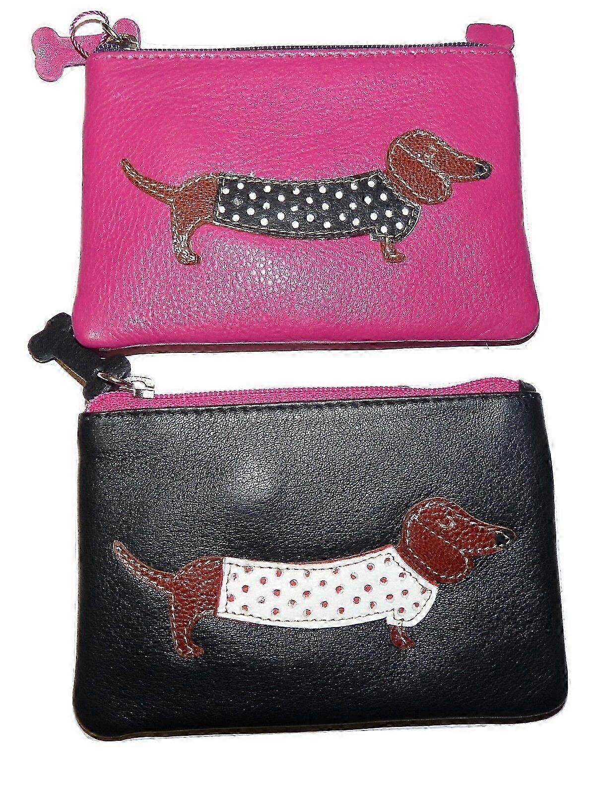 Mala Leather Sausage Dog Coin Purse Soft Genuine Leather in Pink or Black