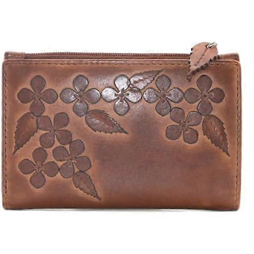Mala Leather Wild Bloom Tan Compact Purse RFID 5 Cards ID Coin Pocket