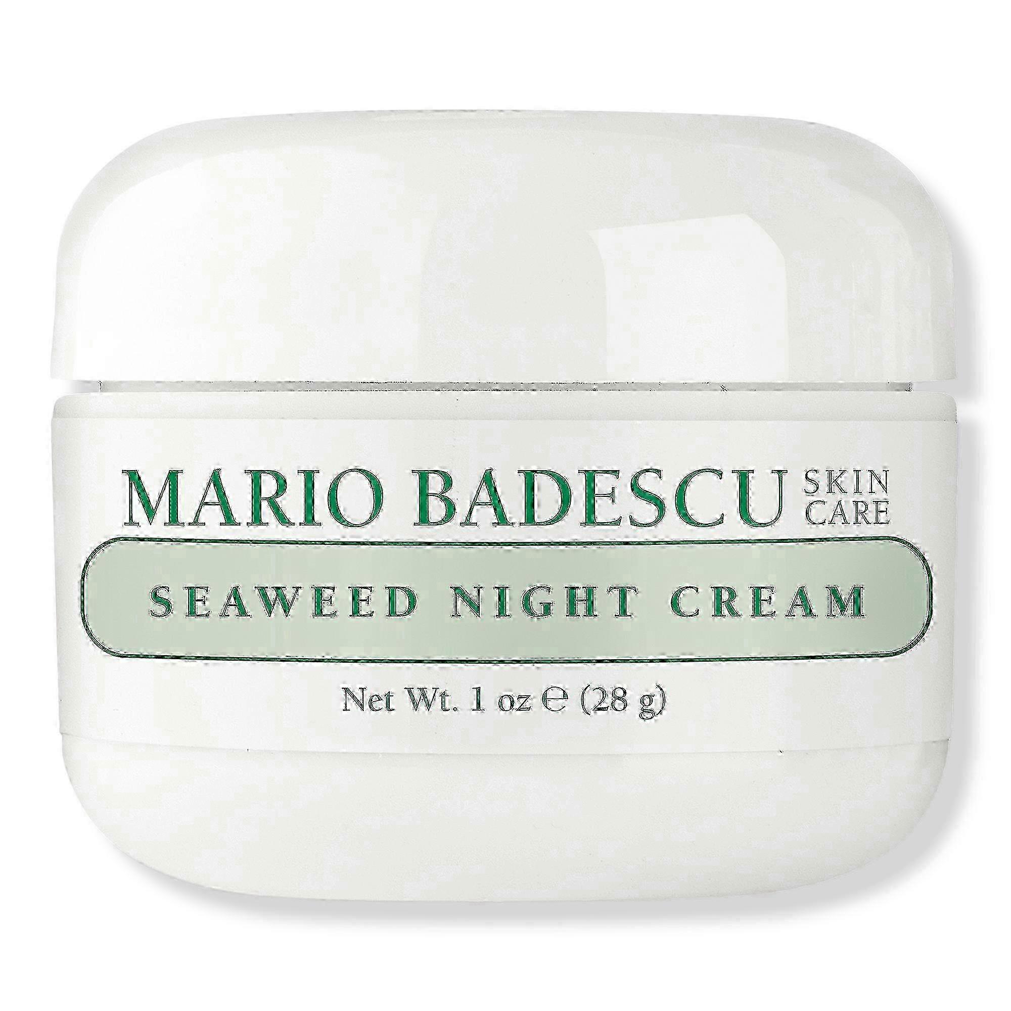 Mario Badescu' s Seaweed Night Cream is an oil-free blend of marine extracts and moisturizing powerhouses. Mineral-rich Bladderwrack, Collagen, Elastin, and Sodium Hyaluronate are infused into our most universal night cream to smooth skin and unveil a radiant, hydrated complexion come morning. Benefits Oil-freeCreamy and nourishingEnriched with mineral-rich SeaweedPacked with line-smoothing proteinsDeeply moisturizes, softens, and smooths to reveal a radiant complexion come morning Suggested Use: Apply every evening after cleansing and toning. Layer over a serum for enhanced results. If product gets into eyes, rinse well with water. Expiration Date: We have fresh stock each week with exceptional expiration dates prior to APRIL 2024. Products will expire no later than six months to 1 year after receipt. Product Packaging: Please note that some manufacturer may often change their packaging. This product may arrive different from what is pictured. We will always ship the most up-to-date packaging to our customers. Please contact us if you have any questions about this product or would like to request an older version of this product. Healthcare Disclaimer: Content on this site is for reference purposes only. OTC Shoppe Express does not represent or warrant that the nutrition, ingredient, allergen and other product information on our Web or Mobile sites are accurate or complete, since this information comes from the product manufacturers. On occasion, manufacturers may improve or change their product formulas and update their labels. We recommend that you do not rely solely on the information presented on our Web or Mobile sites and that you review the product's label or contact the manufacturer directly if you have specific product concerns or questions. If you have specific healthcare concerns or questions about the products displayed, please contact your licensed healthcare professional for advice or answers. UPC: 000002209856 Weight: 0.57 lbs