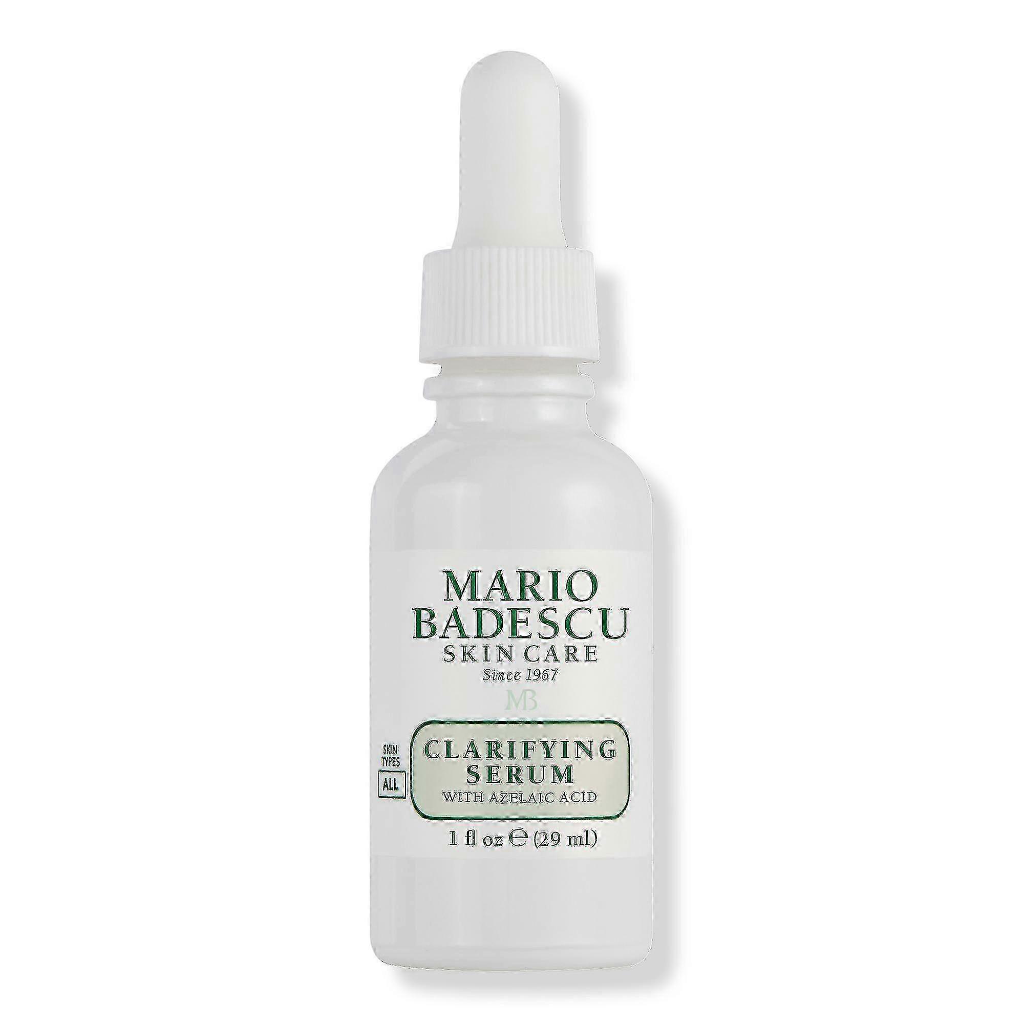 Mario Badescu's Clarifying Serum is a post-blemish serum for sensitive problem-prone skin, that soothes and promotes a healthy-looking complexion. Formulated with Azelaic Acid and a prebiotic, postbiotic blend to reduce the appearance of blemishes. Benefits Clarifies, balances, and hydrates skinHelps to promote a clearer, healthy-looking complexionHelps to clear pores and reduce the appearance of blemishesLightweight feel, non-greasy Key Ingredients Azelaic Acid helps to reduce blemish formationJava Tea Extract helps to decrease shine, pore size and oily skinAloe Vera soothes and hydratesAntioxidant Skullcap ExtractPrebiotic Inulin and Alpha-Glucan OligosaccharidePostbiotic Lactobacillus Ferment Lysate Suggested Use: Apply 3-4 drops to the face after cleansing and toning (avoiding the eye area). Follow with moisturizer or night cream. May be used every night or as needed. If product gets into eyes, rinse well with water. Expiration Date: We have fresh stock each week with exceptional expiration dates prior to APRIL 2024. Products will expire no later than six months to 1 year after receipt. Product Packaging: Please note that some manufacturer may often change their packaging. This product may arrive different from what is pictured. We will always ship the most up-to-date packaging to our customers. Please contact us if you have any questions about this product or would like to request an older version of this product. Healthcare Disclaimer: Content on this site is for reference purposes only. OTC Shoppe Express does not represent or warrant that the nutrition, ingredient, allergen and other product information on our Web or Mobile sites are accurate or complete, since this information comes from the product manufacturers. On occasion, manufacturers may improve or change their product formulas and update their labels. We recommend that you do not rely solely on the information presented on our Web or Mobile sites and that you review the product's label or contact the manufacturer directly if you have specific product concerns or questions. If you have specific healthcare concerns or questions about the products displayed, please contact your licensed healthcare professional for advice or answers. UPC: 000002594657 Weight: 0.57 lbs