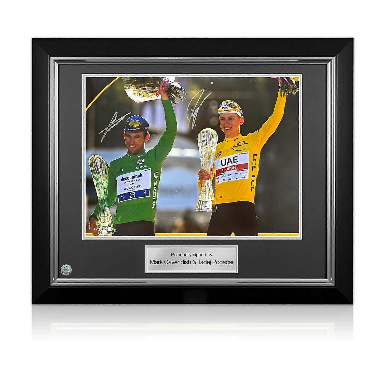 Mark Cavendish and Tadej Pogacar Signed Cycling Photo. Deluxe Frame