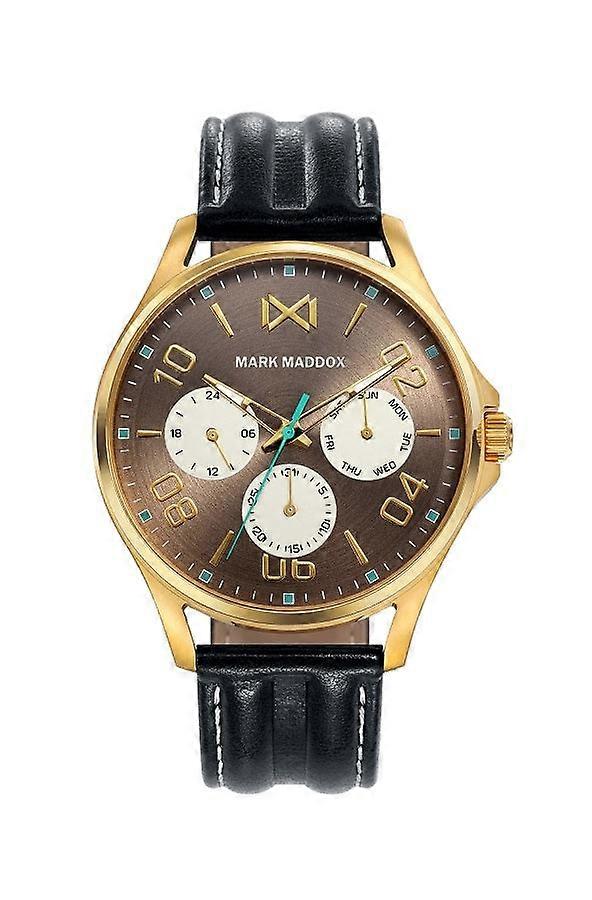 Mark Maddox Hc7111-45 Men's Brown Dial Black Leather Strap Watch - 42mm