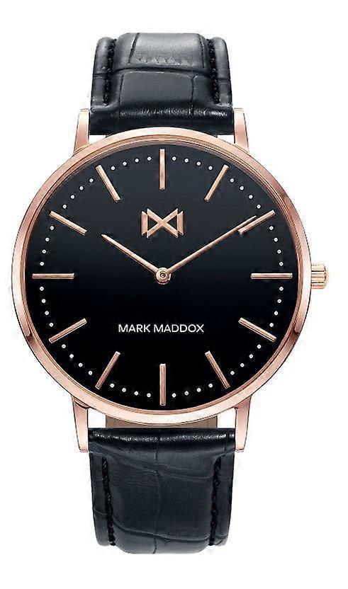 Mark Maddox Hc7116-57 Men's Black Dial Rose Gold-tone Case Black Leather Strap Watch - 41mm