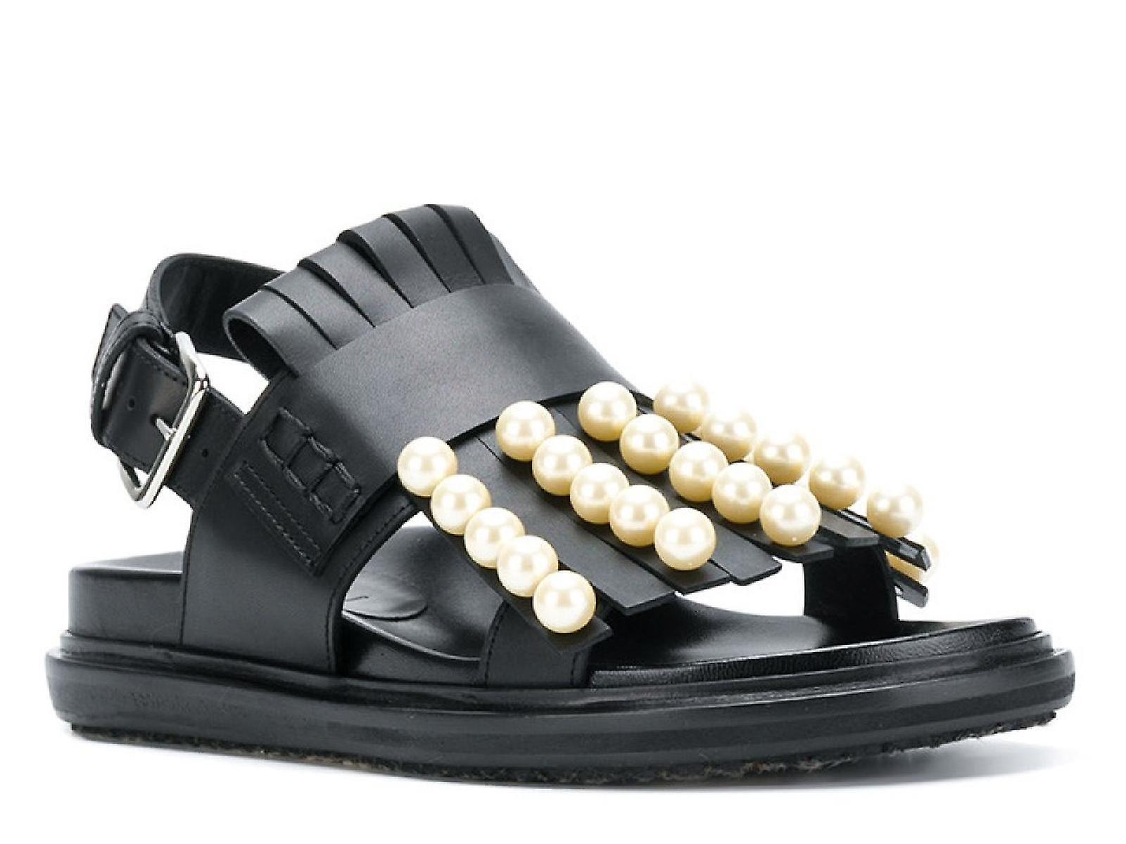 Marni flat slingback sandals in black leather with pearls