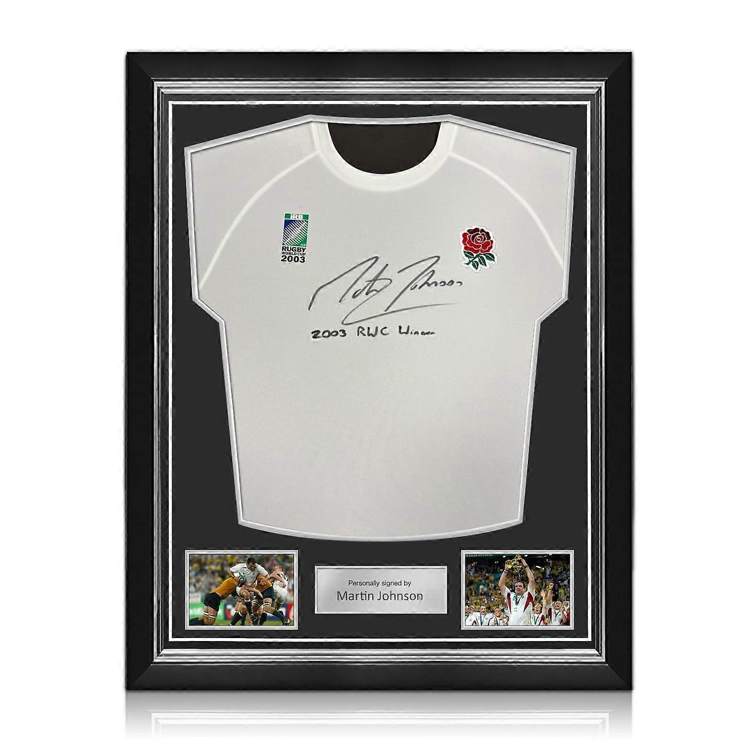 Martin Johnson Signed Commemorative Champions '03 England Rugby Shirt: 2003 Winner Inscription. Superior Frame