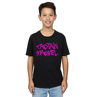 Marvel Boys Captain Marvel Spray Text T-Shirt