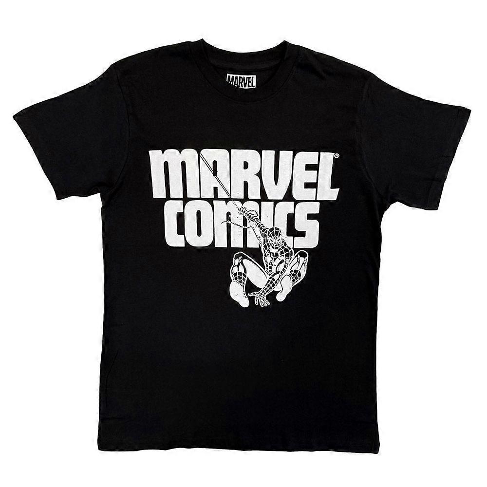 An official licensed Marvel Comics T-Shirt featuring the Spider-Man Marvel Comics design motif. This high quality unisex tee is available in black colorway. Comes in a wide range of sizes from Small through XX-Large, subject to availability.