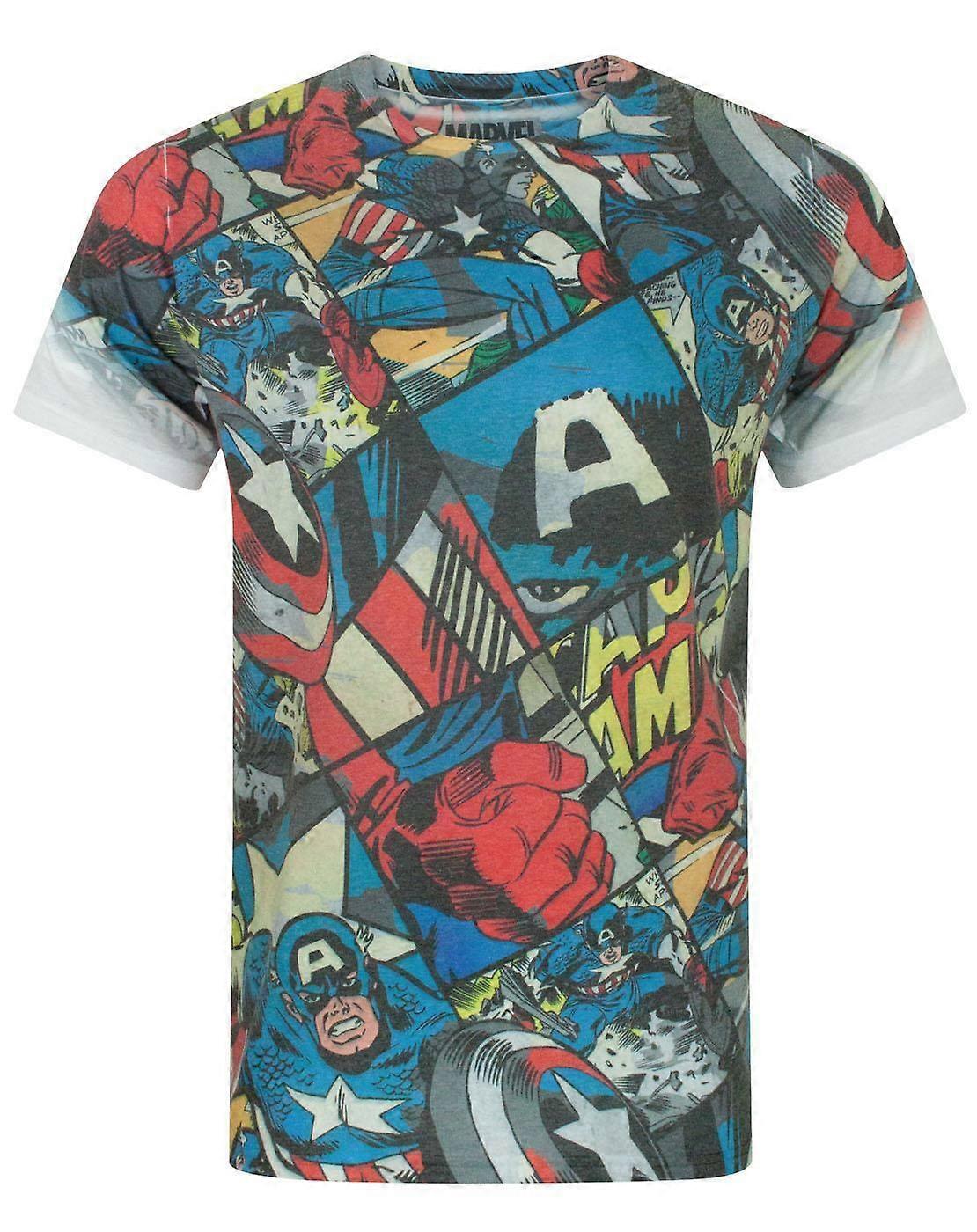 Marvel Mens Short Sleeved T-Shirt White Captain America Comic Sublimation Print