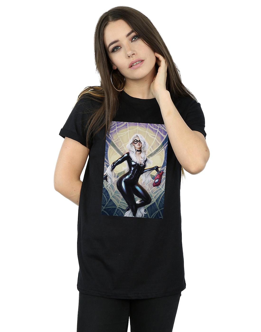 Marvel Women's Black Cat Artwork Boyfriend Fit T-Shirt