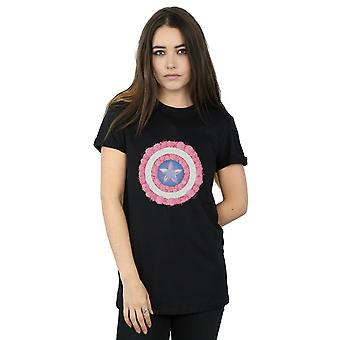 Marvel Women's Captain America Flowers Shield Boyfriend Fit T-Shirt