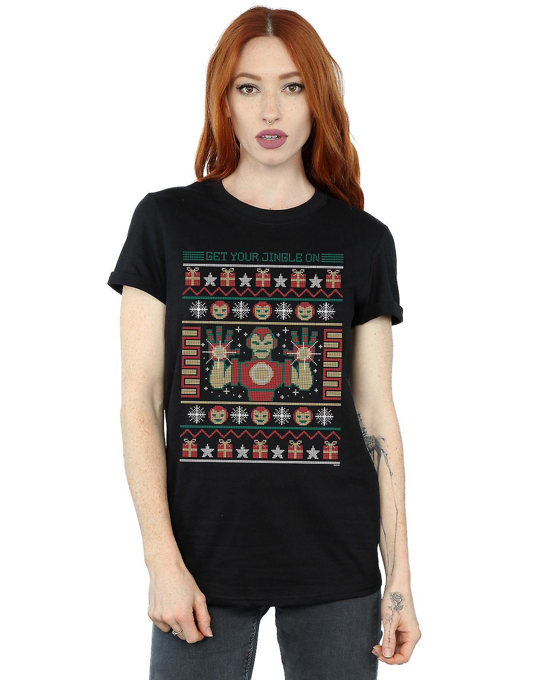Marvel Women's Iron Man Get Your Jingle On Fair Isle Boyfriend Fit T-Shirt