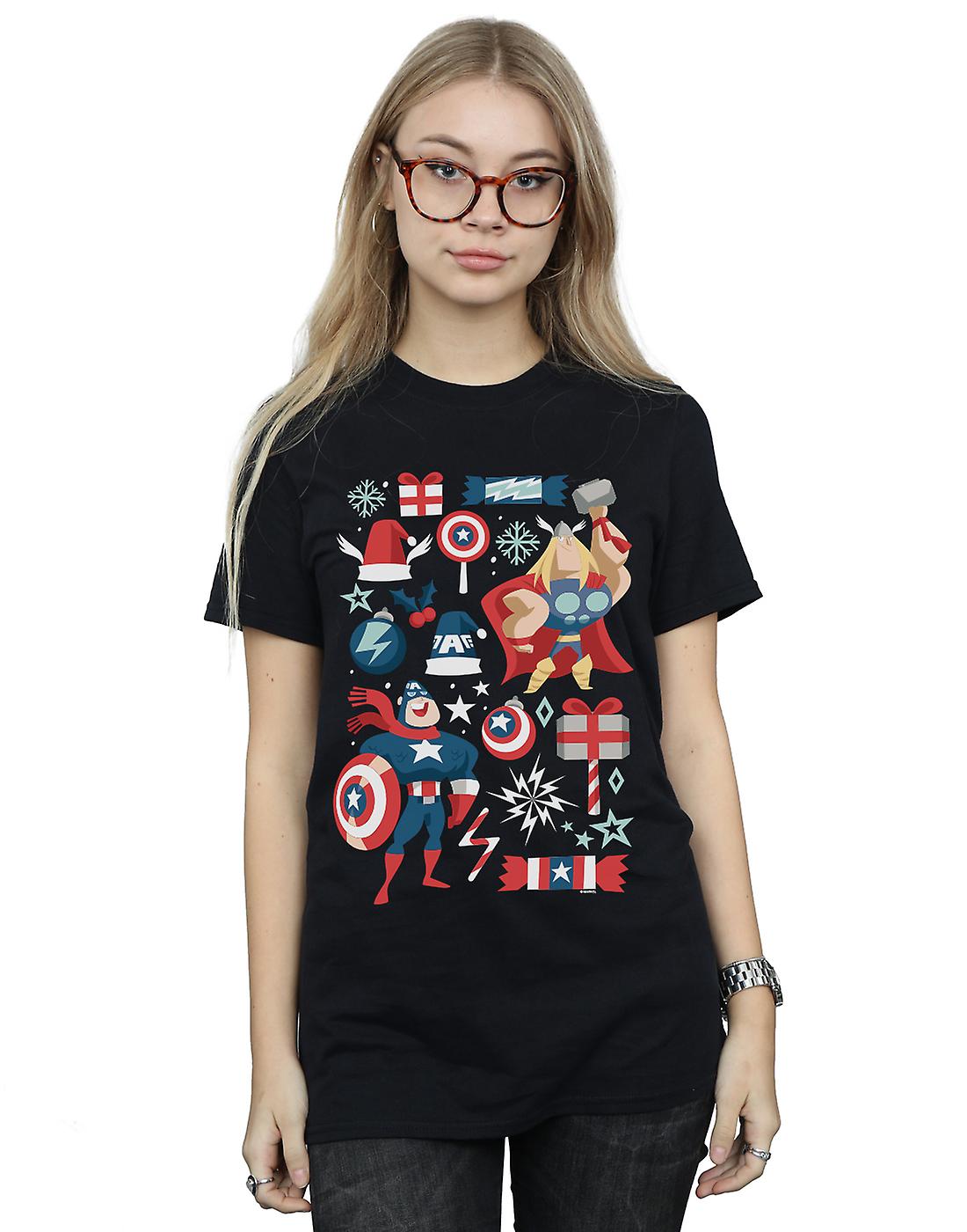 Marvel Women's Thor And Captain America Christmas Day Boyfriend Fit T-Shirt