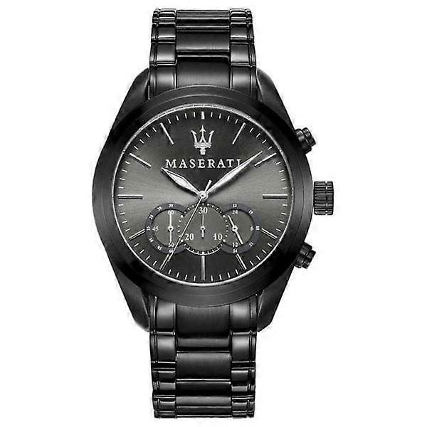 The watches from the Traguardo collection are characterized by unique and refined materials and finishes, capable of attracting the attention of connoisseurs at first glance. Case Material: Stainless Steel with Gunmetal PlatingCase Diameter: 45 mmCase Thickness: 12.7 mmBand Material: Stainless Steel with Gunmetal PlatingBand Colour: BlackBand Width: 22 mmWater Resistant: 100 mDial Colour: Gun MetalMovement: Quartz chronographClasp: Folding clasp with push buttonsCrown: Screw-downFeatures: Chronograph, 24-Hour Sub-dial, 30-Second Sub-dial, 60-Minute Sub-dial