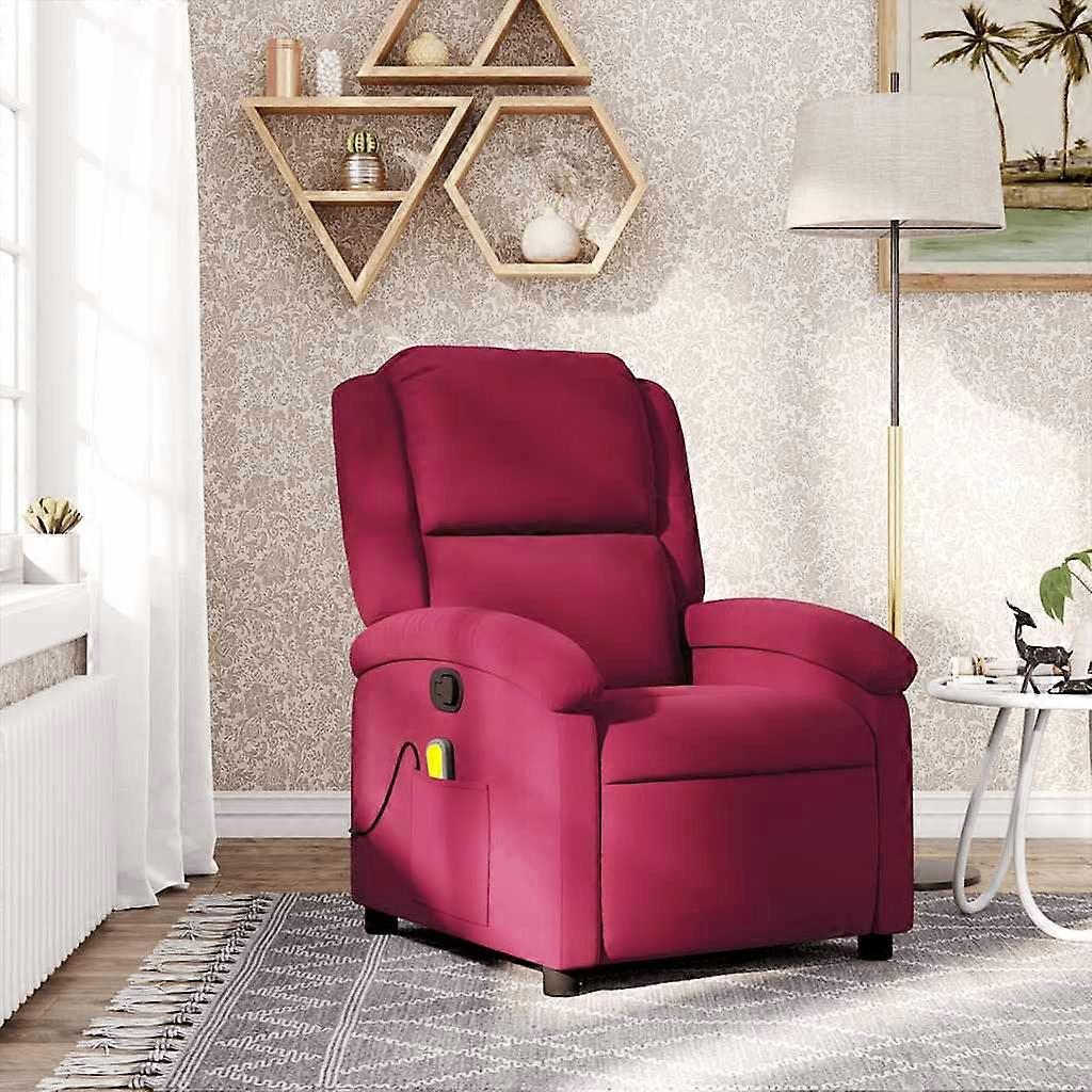 Farbe: WeinrotMaterial: Samt (100 % Polyester), Metall, SperrholzFüllmaterial: Schaumstoff, PP-FaserAbmessungen in Sitzposition: 71 x 86,5 x 99,5 cm (B x T x H)Abmessungen in Liegeposition: 71 x 144,5 x 82 cm (B x T x H)Sitzbreite: 47 cmSitztiefe: 56,5 cmSitzhöhe vom Boden: 42-45 cmArmlehnenhöhe vom Boden: 59 cmOptionen: Massage ohne HeizungMassagetyp: 6-Punkt-VibrationsmassageEingangsspannung: DC 5VEingangsstrom: 2AMax. Tragfähigkeit: 110 kgZusammenbau erforderlich: Ja GPSR