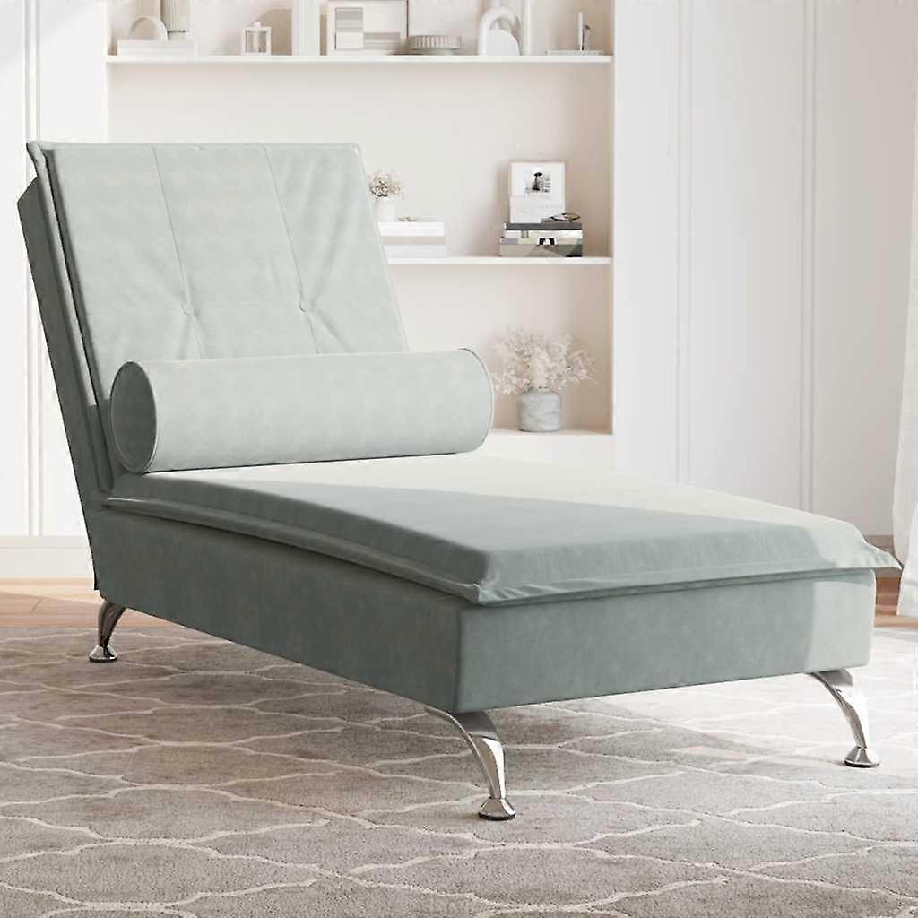 Massage-Chaiselongue mit Nackenrolle Hellgrau Samt