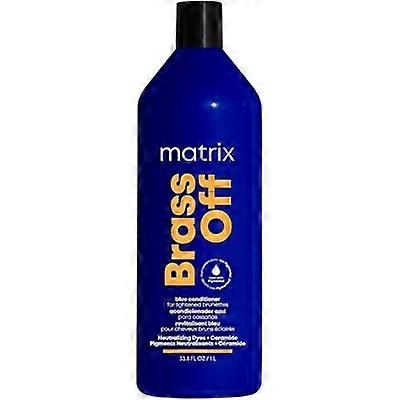 Matrix Brass Off Blue Conditioner 33.8oz / 1L Toning and care in just one wash Matrix Brass Off Blue Conditioner, infused with blue purple pigments and ceramide, helps remove brassy undertones in just one wash Provides 2x more moisture and shiny, stronger hair. For lightened brunettes.