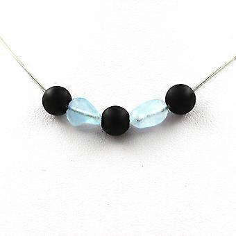 Matte black Onyx beaded necklace 8 mm + Brazilian Aquamarine