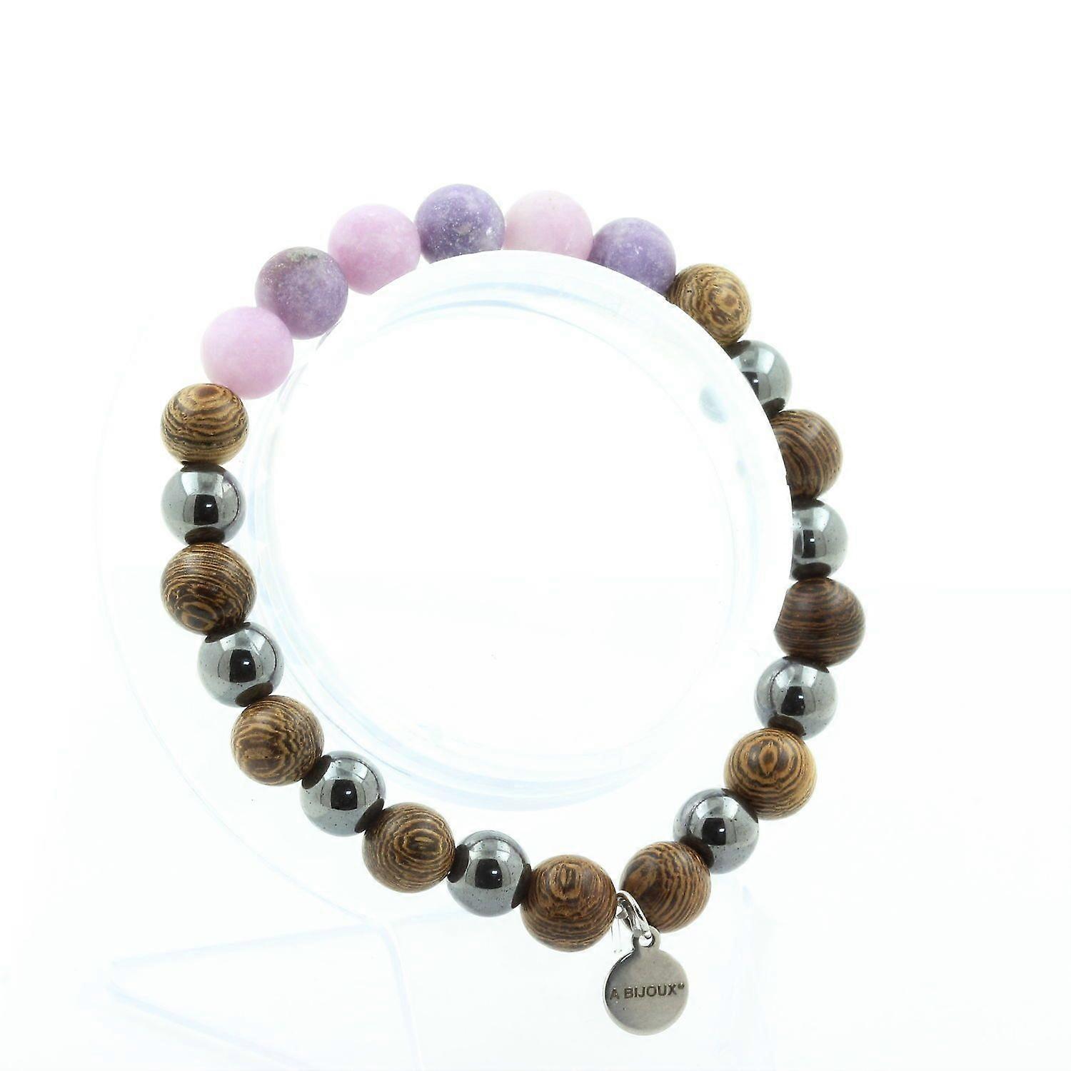 Matte purple Mica Beads Bracelet + Hematite + wood 8 mm