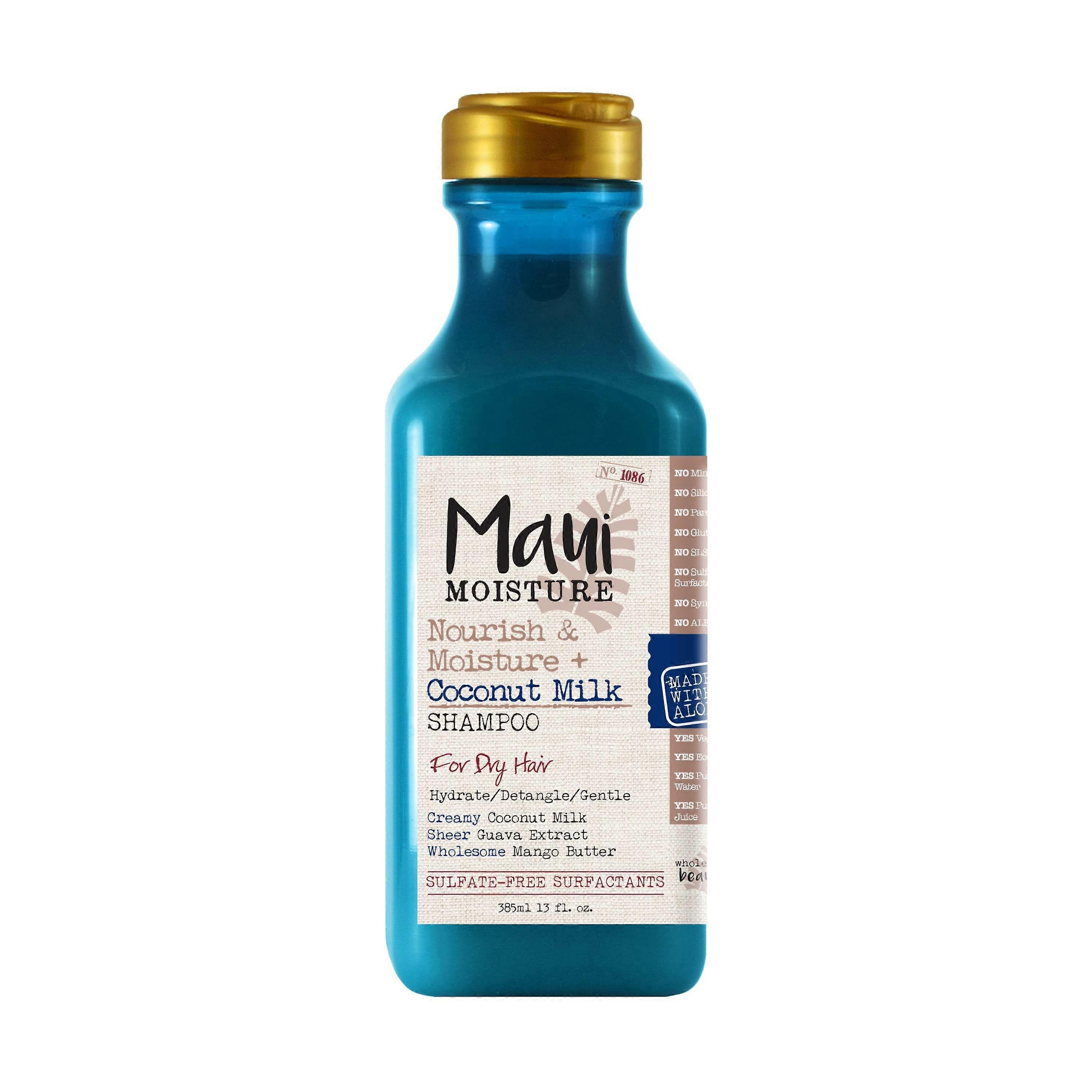 Maui Moisture Nourish ; Moisture Coconut Milk Shampoo starts with a unique blend containing aloe vera juice and is infused with pure coconut water, unlike other shampoos that start with deionized water as their first ingredient listed. Weightless coconut milk infuses this light and creamy shampoo blend along with sheer guava oil and mango butter. Use this lightweight blend daily without fear of build-up and give your hair a healthy glow and shine Moisturized strands, mended split ends and a healthy glow with every use.Maui Moisture Nourish ; Moisture Coconut Milk Shampoo starts with a unique blend containing aloe vera juice and is infused with pure coconut water, unlike other shampoos that start with deionized water as their first ingredient listed. Weightless coconut milk infuses this light and creamy shampoo blend along with sheer guava oil and mango butter. Use this lightweight blend daily without fear of build-up and give your hair a healthy glow and shine Moisturized strands, mended split ends and a healthy glow with every use. Maui Moisture products are formulated without sulfates, parabens and phthalates (in the packaging) Expiration Date: We have fresh stock each week with exceptional expiration dates prior to JANUARY 2024. Products will expire no later than six months to 1 year after receipt. Product Packaging: Please note that some manufacturer may often change their packaging. This product may arrive different from what is pictured. We will always ship the most up-to-date packaging to our customers. Please contact us if you have any questions about this product or would like to request an older version of this product. Healthcare Disclaimer: Content on this site is for reference purposes only. does not represent or warrant that the nutrition, ingredient, allergen and other product information on our Web or Mobile sites are accurate or complete, since this information comes from the product manufacturers. On occasion, manufacturers may improve or change their product formulas and update their labels. We recommend that you do not rely solely on the information presented on our Web or Mobile sites and that you review the product's label or contact the manufacturer directly if you have specific product concerns or questions. If you have specific healthcare concerns or questions about the products displayed, please contact your licensed healthcare professional for advice or answers. UPC: 022796180513 Weight: 19.98 oz OSE: MY20118-01-836-2022616-WAL154770030