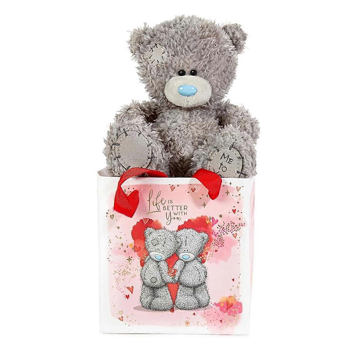 This 5" Me to You Bear is packaged in a beautifully decorated Tatty Teddy gift bag with the words "Life is better with you".This Me to You bear would make the perfect gift for Birthday, Valentine's Day or any other occasion.This adorable Tatty Teddy is crafted from soft, grey plush material, featuring the signature blue nose, patches, and hand-stitched details that make it so endearing.Me to You Bears, also known as the Tatty Teddy is the famous grey bear with a blue nose and patches. There's one for every occasion.