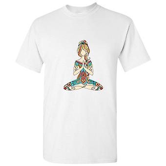 Meditating Yoga Woman Girl Buddha Cartoon White Men T-shirt Shirt Tee Top