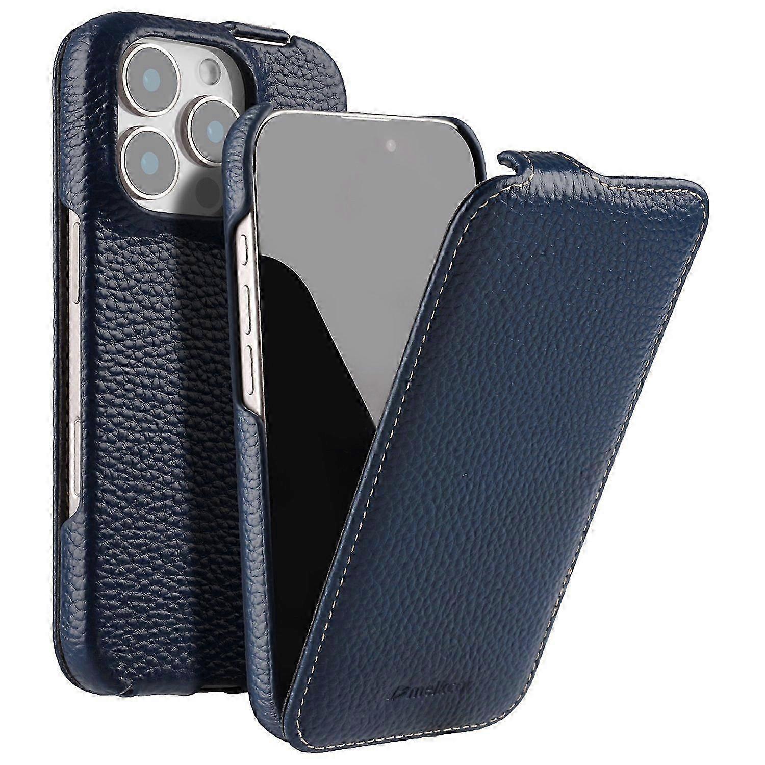 MELKCO For iPhone 16 Pro Max Case Compatible Vertical Flip Genuine Cow Leather+PC Phone Cover