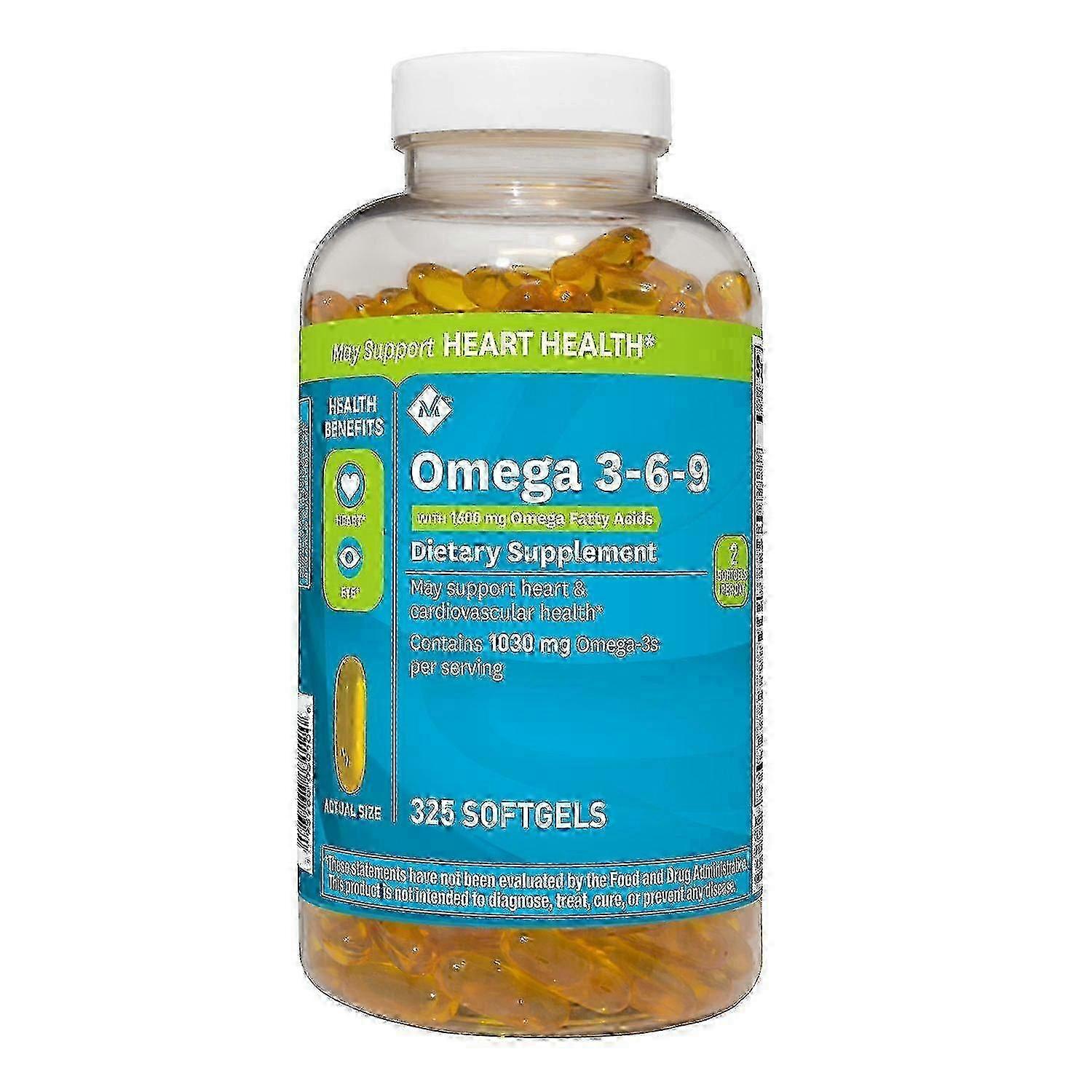 Highlights May support heart & cardiovascular health* May promote eye health* 1600 mg of Total Omega Fatty Acids per 2 softgels 1030 mg Omega-3s per 2 softgels Product DetailsOmega 3-6-9 is formulated with a unique blend of six nutrient-rich, natural source oils that give 1600 mg of essential fatty acids per serving. Each softgel contains natural sourced fish oil, cold pressed flaxseed oil, safflower oil, borage oil, olive oil and evening primrose oil that give 1030 mg of EPA, DHA and ALA Omega-3 fatty acids and 570 mg of essential Omega-6 fatty acids and Omega-9 fatty acids per serving. Omega-3 fatty acids help support and maintain cardiovascular health and function, and promote and support visual function and eye health.* Omega-6 and Omega-9 fatty acids help maintain healthy nerve function and activity, and support healthy skin, hair and overall health.* Supportive but not conclusive research shows that consumption of EPA and DHA Omega-3 Fatty Acids may reduce the risk of coronary heart disease. *These statements have not been evaluated by the Food and Drug Administration. This product is not intended to diagnose, treat, cure, or prevent any disease.How To UseSuggested Use: Adults, take with food as a dietary supplement.IngredientsFLAXSEED OIL, FISH OIL, GELATIN, SAFFLOWER OIL, GLYCERIN. CONTAINS 2% OR LESS OF BORAGE OIL, EVENING PRIMROSE OIL, EXTRA VIRGIN OLIVE OIL, NATURAL FLAVOR (LEMON), NATURAL MIXED TOCOPHEROLS, PURIFIED WATER USP. CONTAINS: FISH (ANCHOVY).Specifications Dietary Supplement No Synthetic Dyes No Artificial Flavors No Sugar No Gluten No Lactose