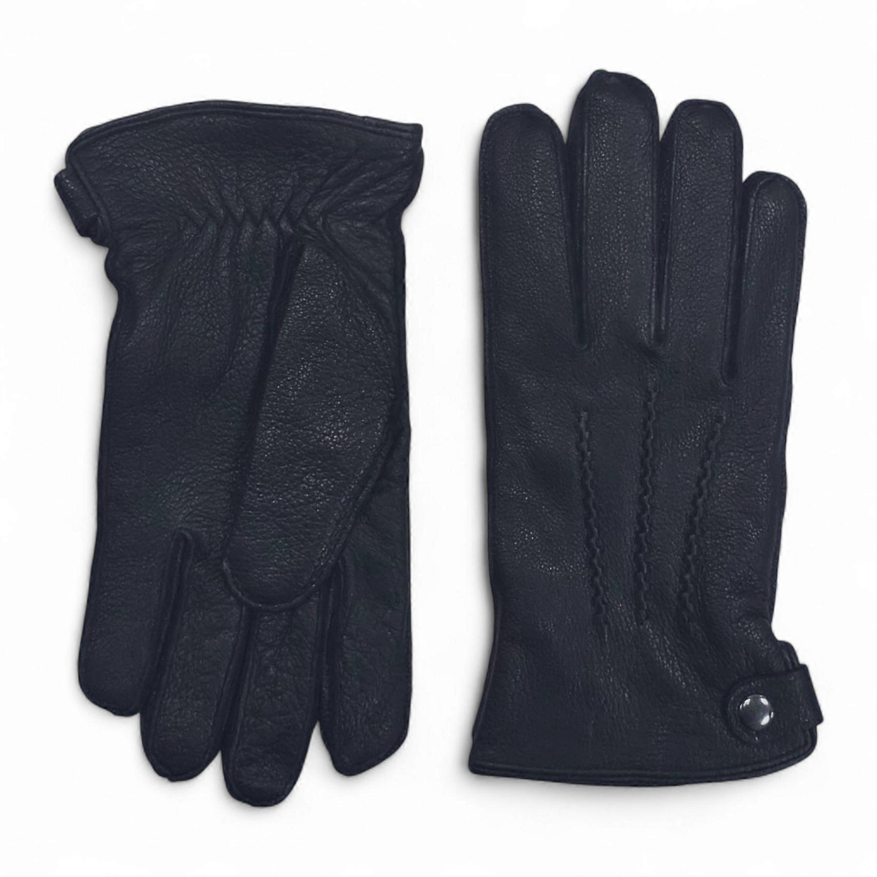 Men’s Black Italian Leather Warm Wool-Lined Winter Bike Riding Driving Casual Gloves