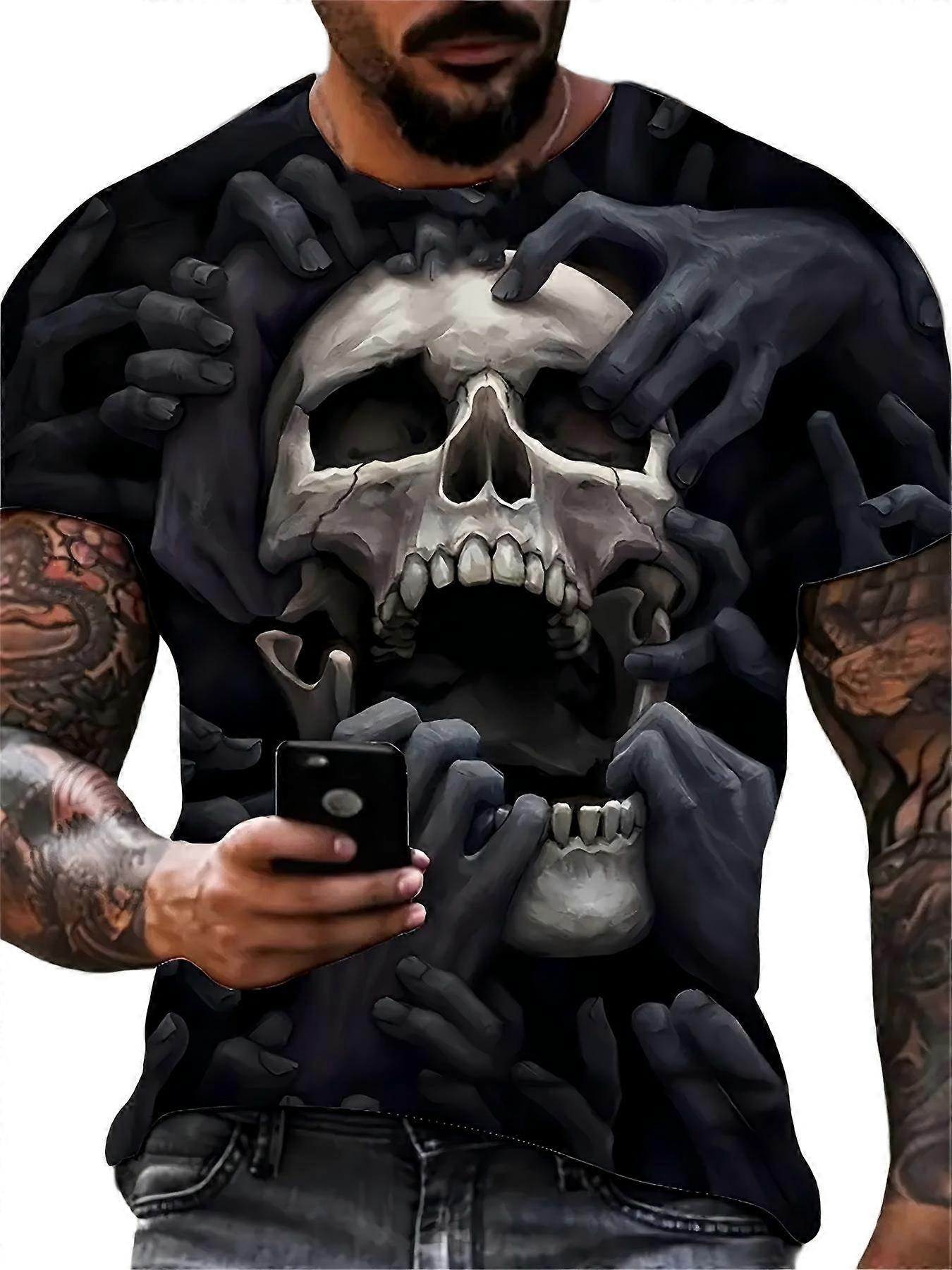 Men’s Edgy Graphic T Shirt 3D Skull And Hands Print Casual Streetwear Tee