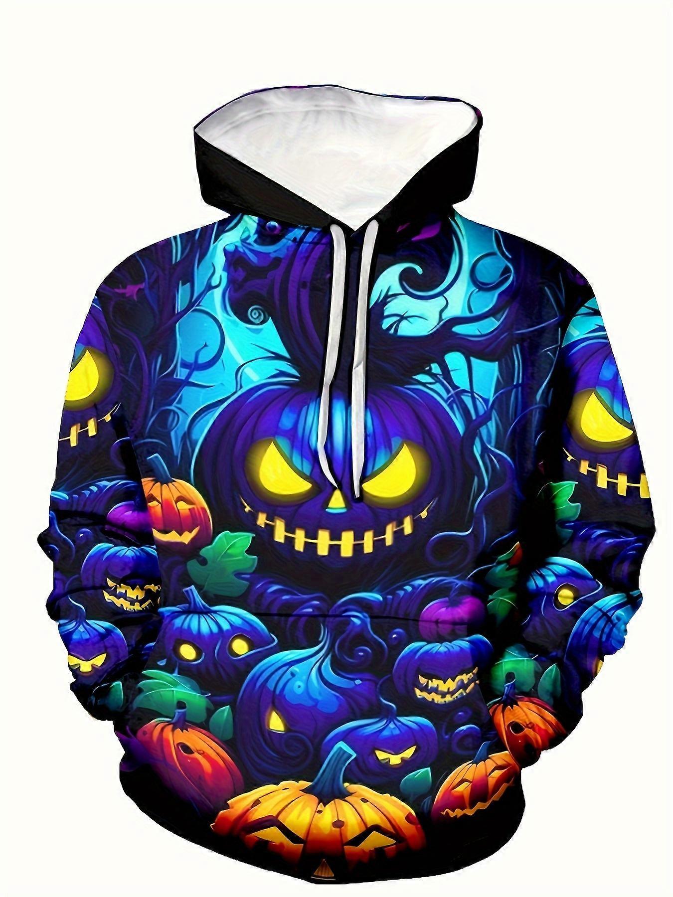 Men’s Festive Graphic Hoodie Halloween Pumpkin Print Casual Streetwear Pullover